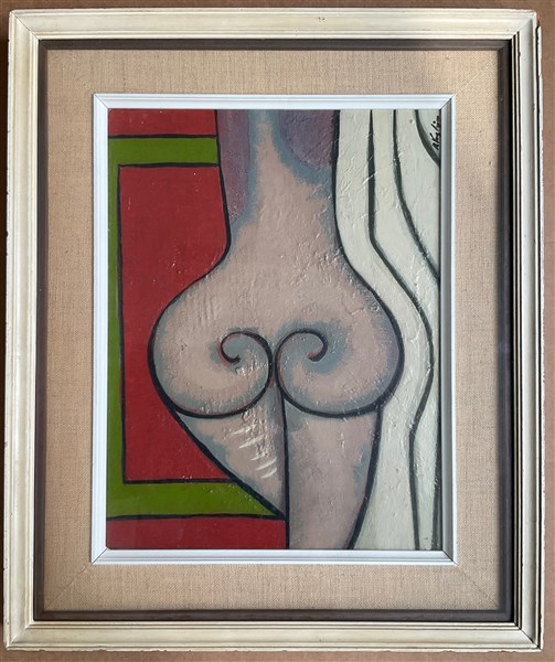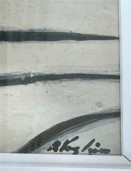Firma indecifrata "Senza titolo" olio su masonite cm 30x40 firmato in basso a d
