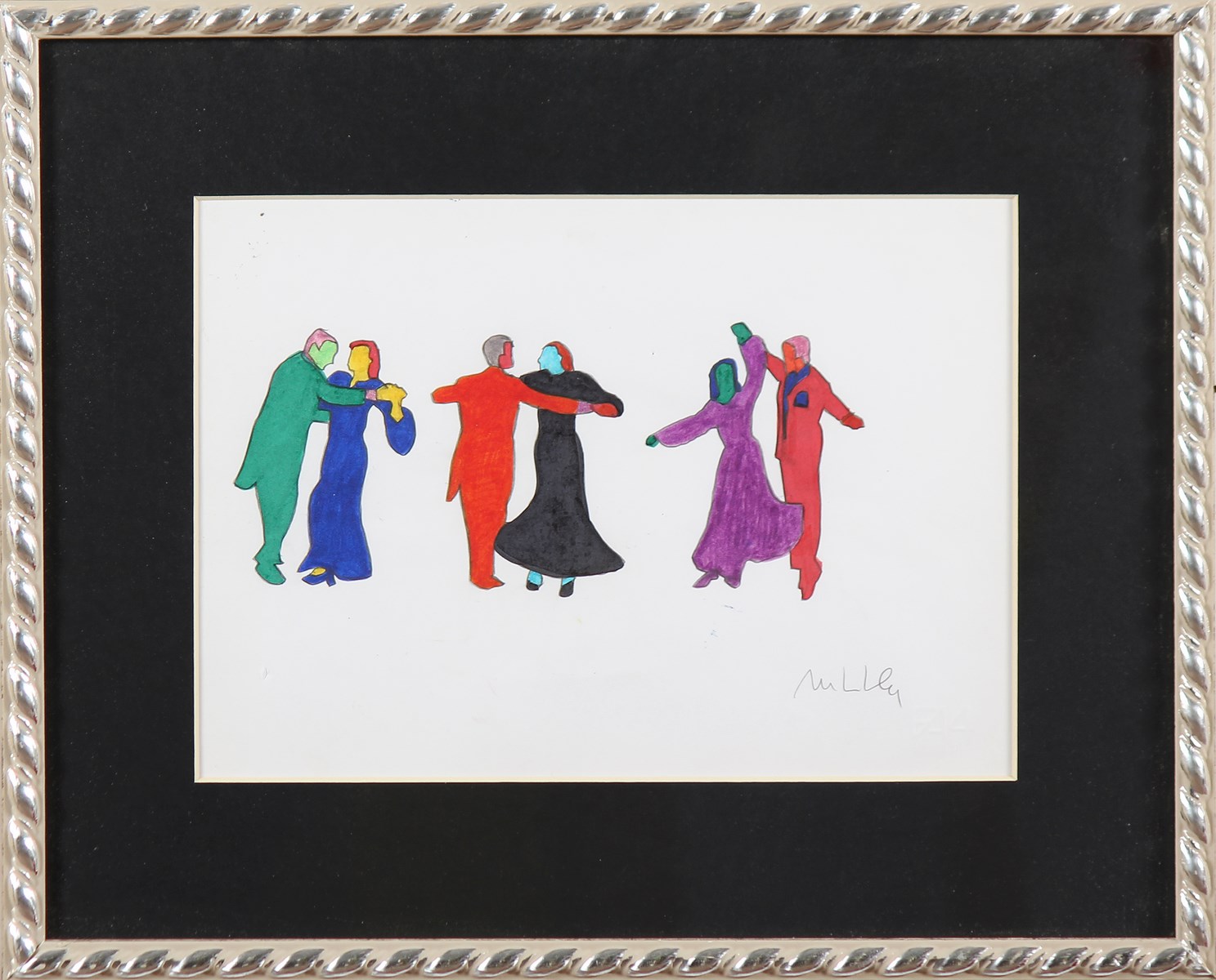 LODOLA MARCO (n. 1955) Ballerini. Tecnica mista su carta. Cm 33,50 x 24,00. Firma in basso a destra a matita e timbro a secco della carta. Cornice presente