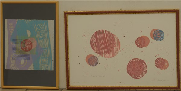 Firma indecifrata, lotto composto da due litografie a colori (cm 37,5x56,5 e cm 27x27) firmate, datate e numerate in basso a matita