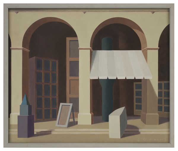 Wilhelm Beuermann "Mittag unter den arkaden" 1981 olio su tela cm 50x60 firmato