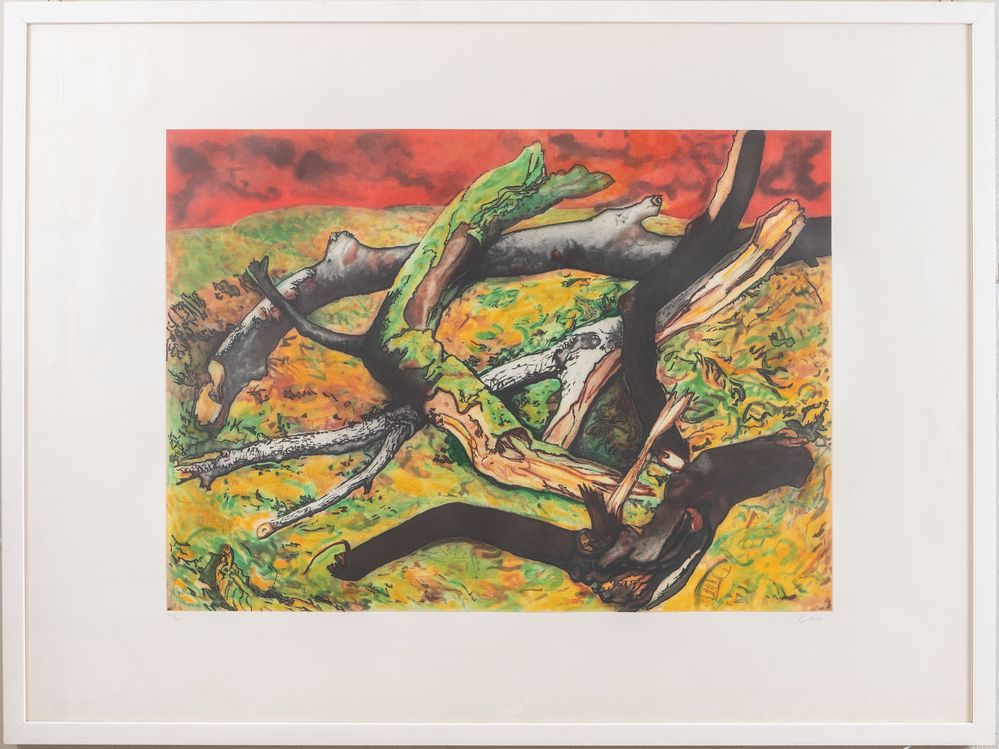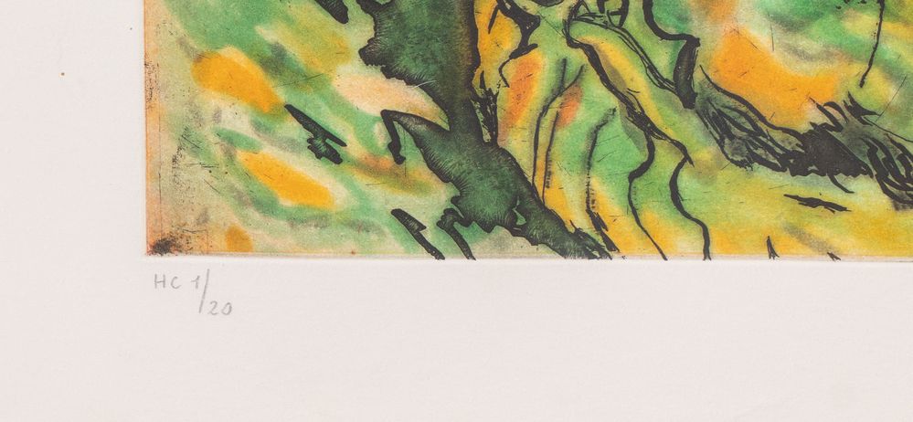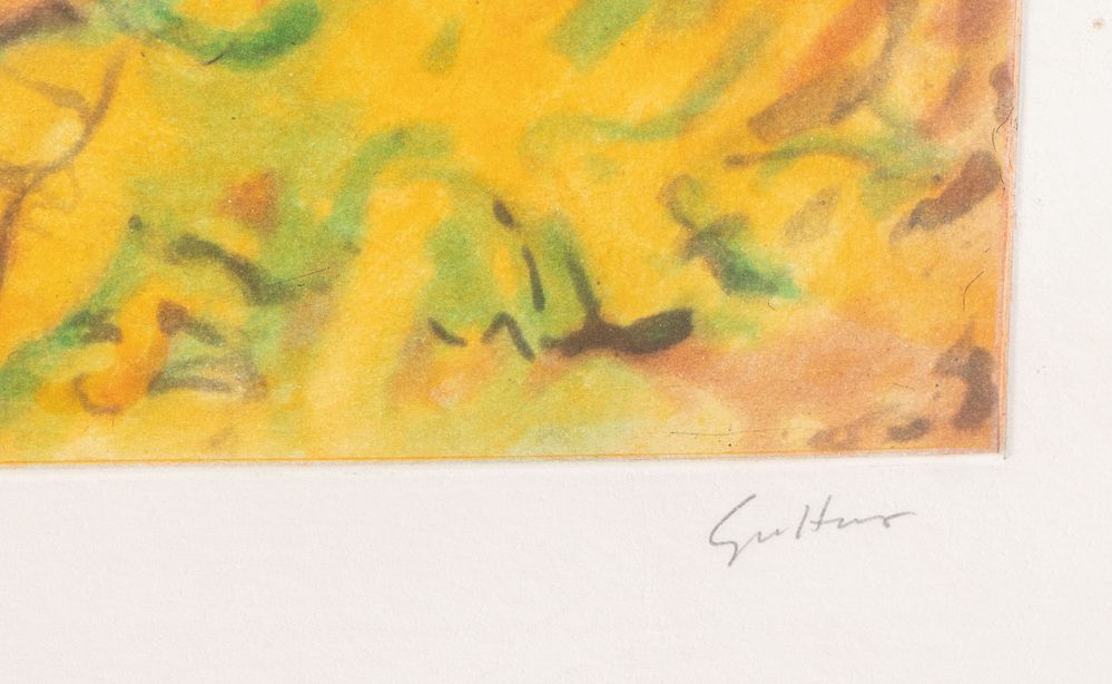 RENATO GUTTUSO (Bagheria 1911 - Roma 1987) "Senza titolo". Litografia a colori su carta. Foglio: cm 95x130; lastra: cm 65x91. Opera firmata in basso a destra Guttuso. Reca numeri di tiratura in basso a sinistra H.C. 1/20. Reca timbri in basso a sinistra Min e Stamperia d'arte Vigna Antoniniana.