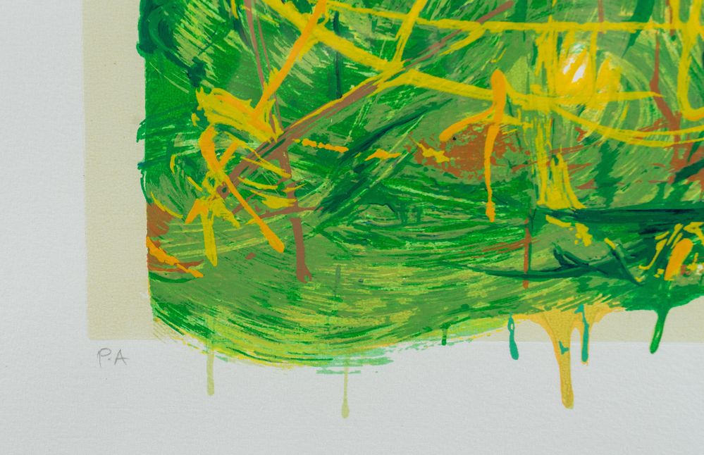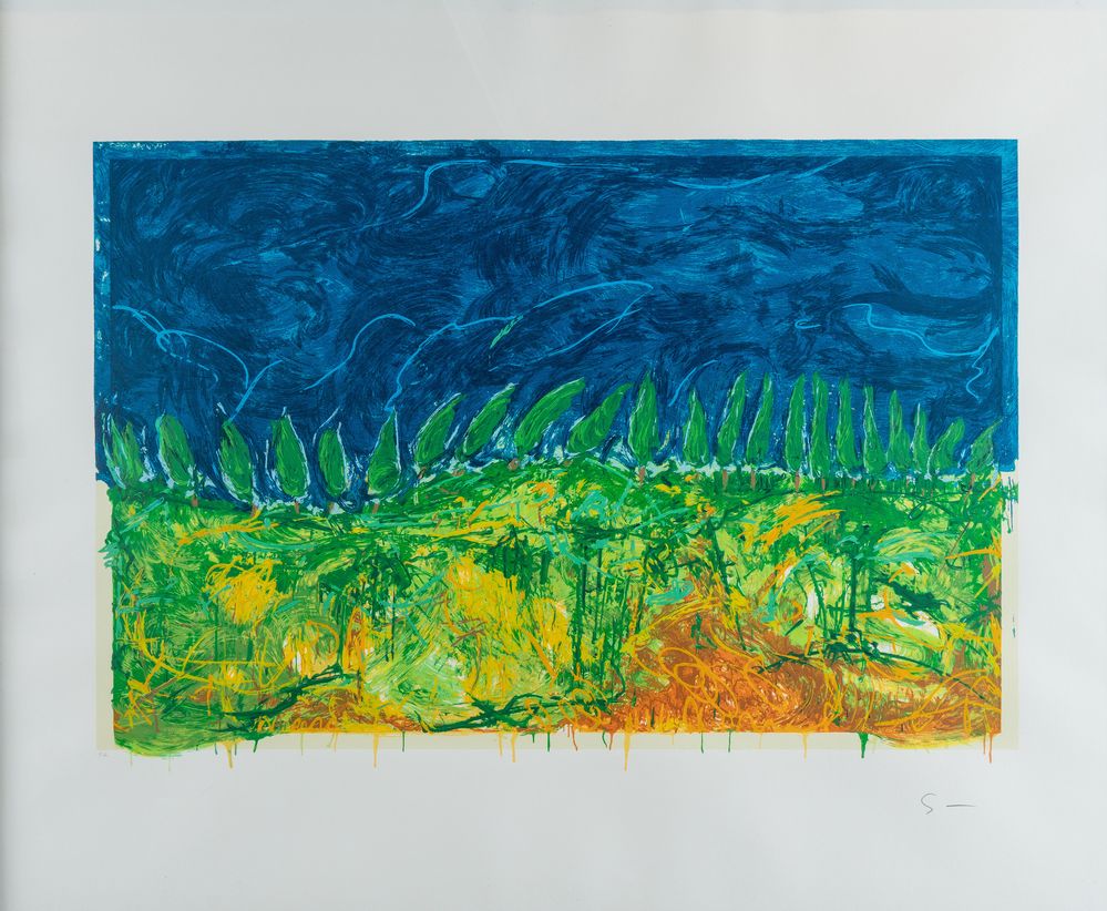 MARIO SCHIFANO (Homs 1934 - Roma 1998) "Senza titolo". Litografia a colori su carta. Foglio: cm 100x120. Opera firmata in basso a destra Schifano. Reca numeri di tiratura in basso a sinistra P.A.