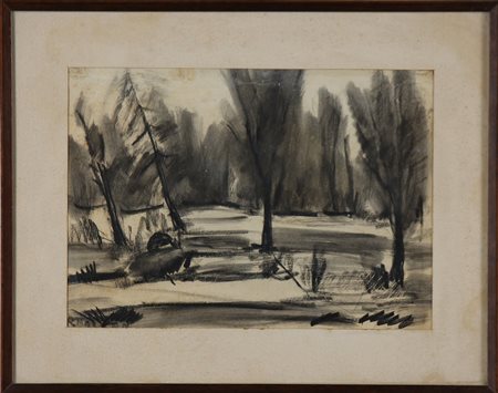 ANONIMO Paesaggio. . Carboncino su carta. Cm 32,00 x 23,00 x 1,20. Firmato R....