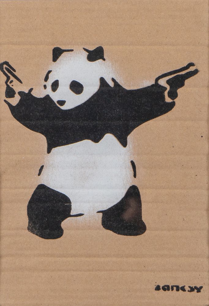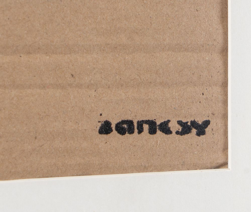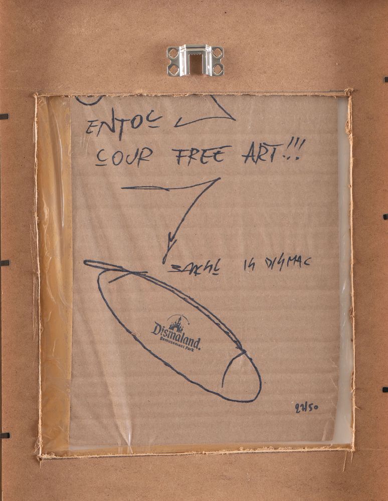 BANKSY (Bristol 1974) "Dismaland", 2015. Spray su cartone. Cm 29x20. Opera firmata in basso a destra Banksy. Al retro reca numeri di tiratura 27/50 e timbro Dismaland. Opera accompagnata da ticket d'ingresso a Dismaland e una brochure pieghevole di Dismaland.