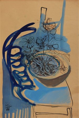 TESTI PIERLUIGI Senza titolo. 1966. Tempera su carta. Cm 66,00 x 98,00. Firma e data in basso a sinistra.