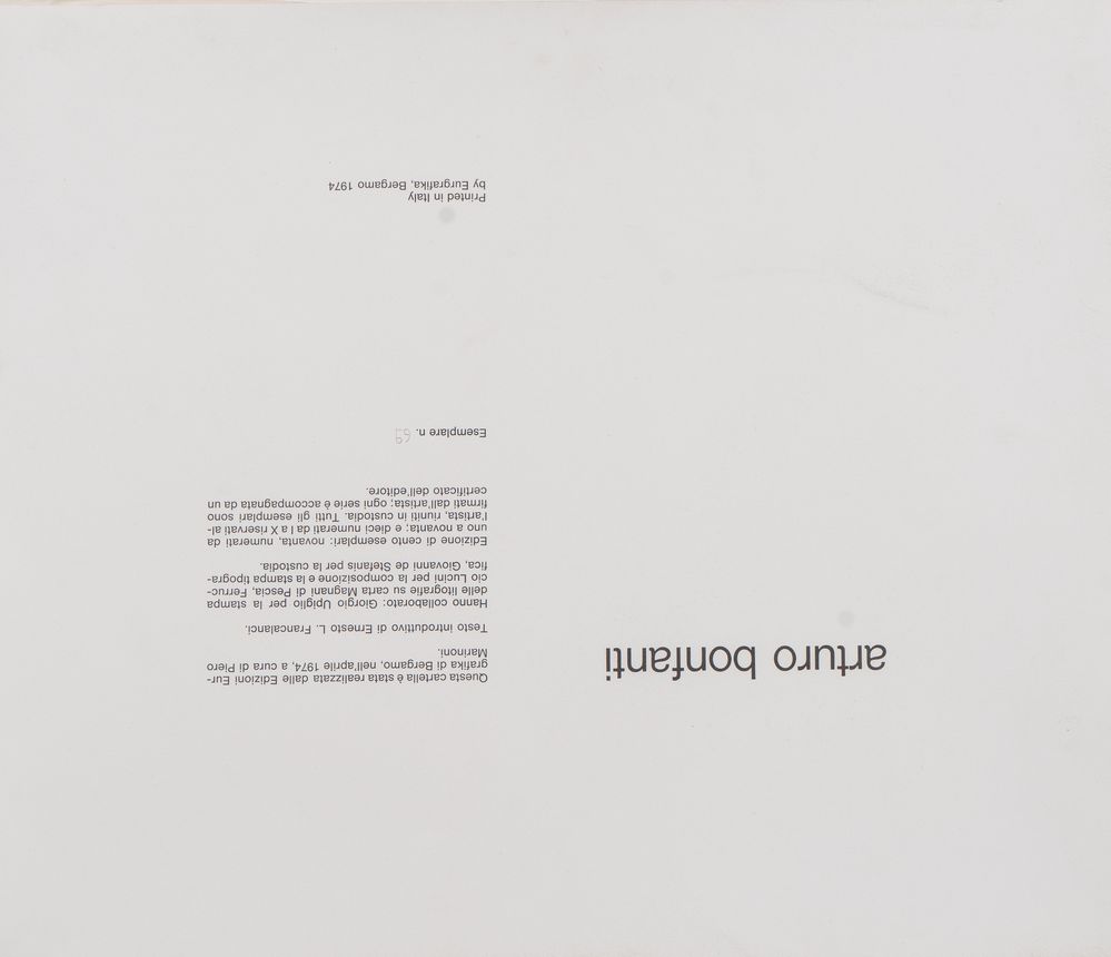 ARTURO BONFANTI (Bergamo 1905 - 1978) Cartella di sei litografie a colori su carta, 1974. Esemplare 69 su 90. Tutte le litografie sono firmate e datate in basso a destra Bonfanti 74. Tutte le litografia recano numeri di tiratura in basso a sinistra 69/90. Cadauna di cm 46,5x55,5.