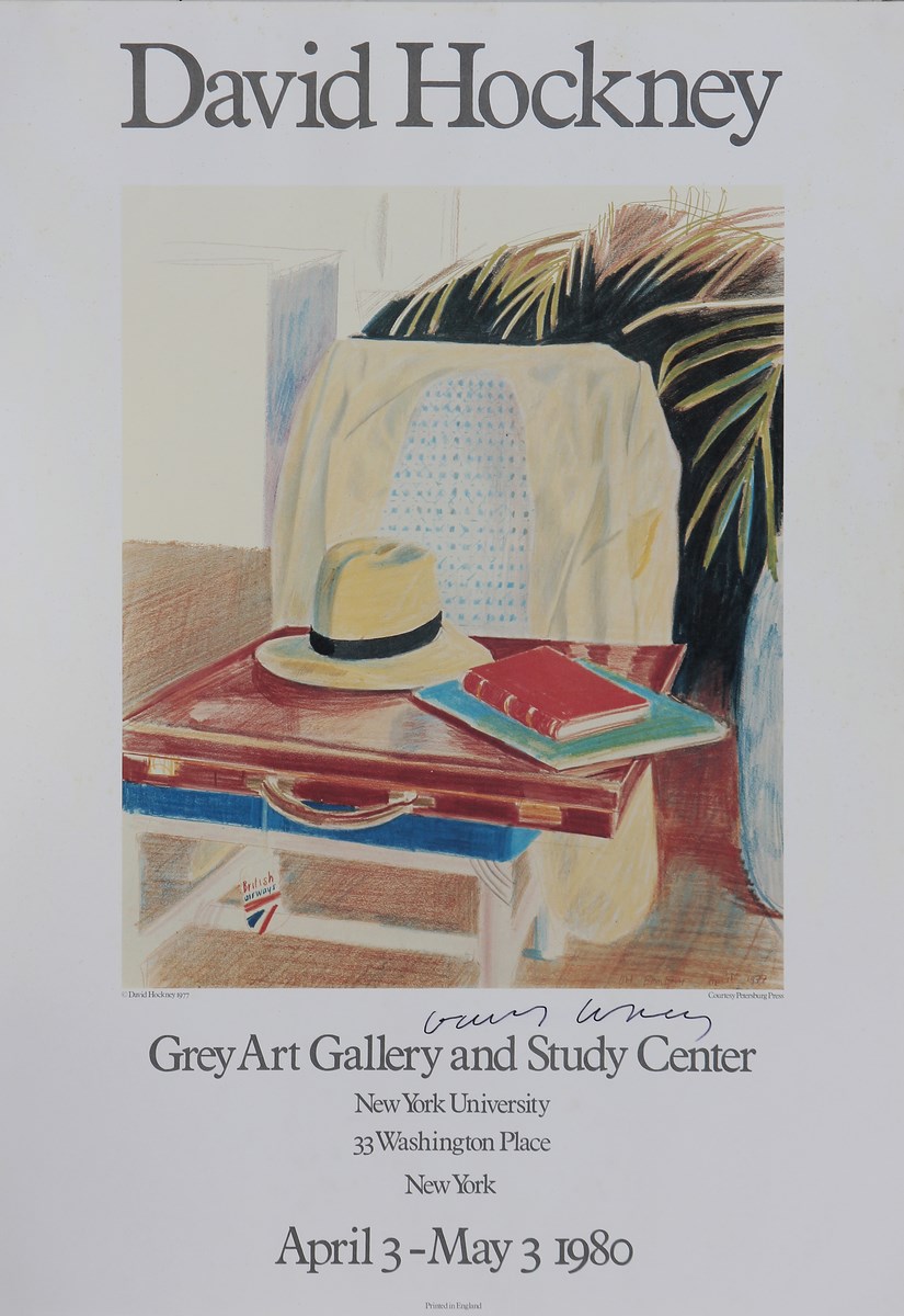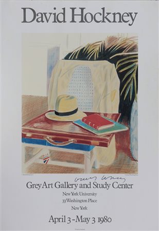 HOCKNEY DAVID (n. 1937) David Hockney. Poster. Cm 50,00 x 70,00. Poster relativo alla mostra monografica tenutasi presso Grey Art Gallery and Study Center, New York, dal 3 aprile al 3 maggio 1980. Firma in basso.