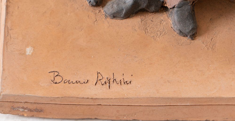 BRUNO RIGHINI (XX secolo) "Senza titolo", 1982. Scultura in terracotta policroma. Cm 23X14X9. Opera firmata alla base Bruno Righini. Reca sigla BR e data 82.