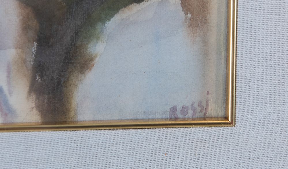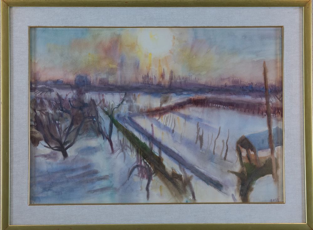 ILARIO ROSSI (Bologna 1911 - 1994) "Paesaggio sotto la neve". Acquerello su carta. Cm 44x62. Opera firmata in basso a destra Rossi.