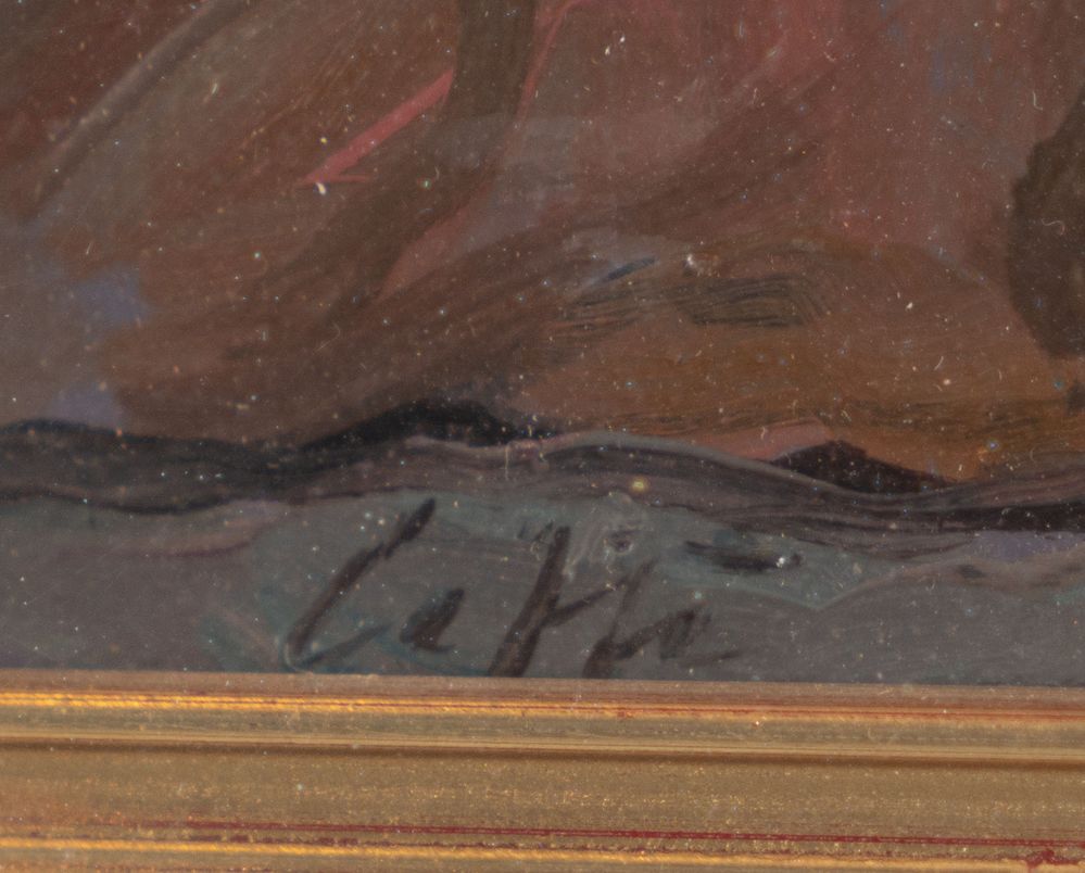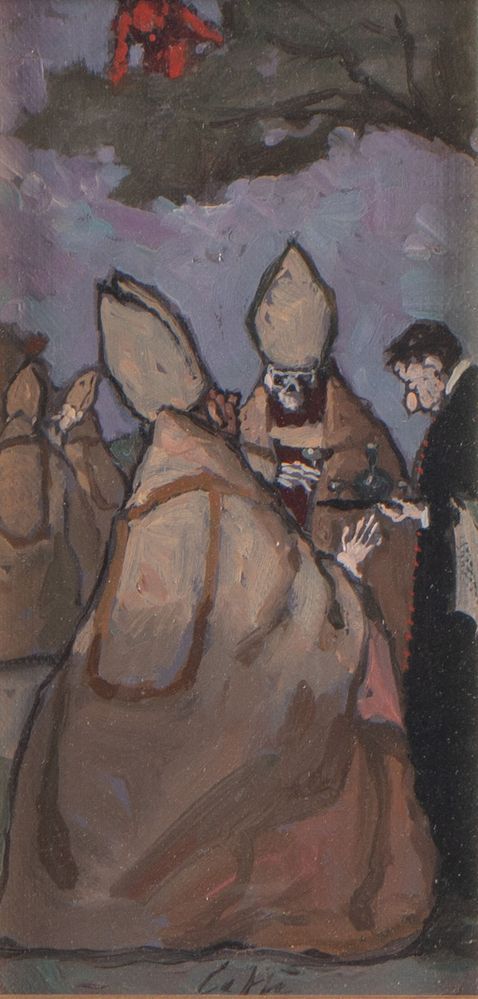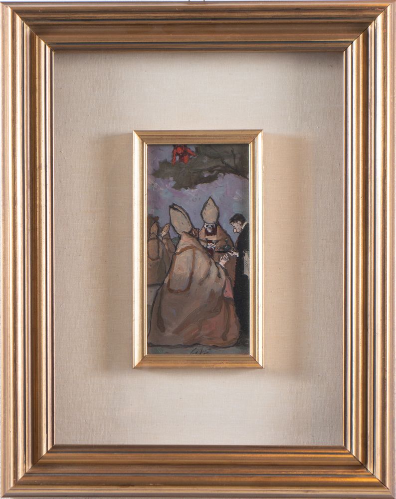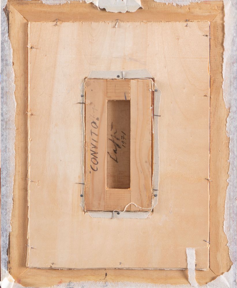 NINO CAFFE' (Alfedena 1908 - Pesaro 1975) "Convito", 1971. Olio su tela. Cm 20x10. Opera firmata in basso al centro Caffe'. Al retro opera firmata e datata Caffe' 1971.
