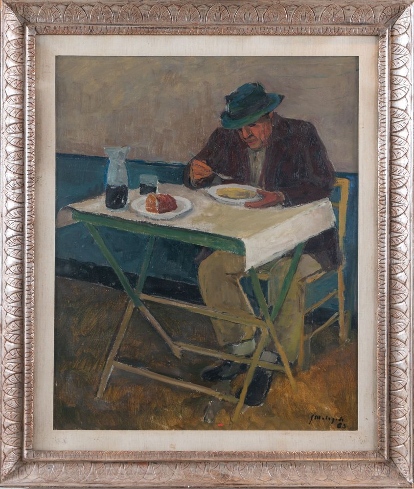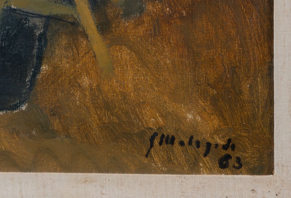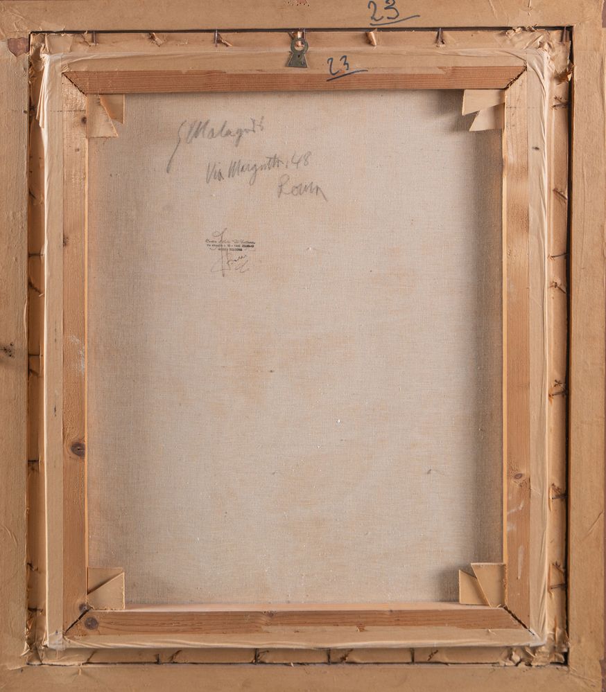 GIUSEPPE MALAGODI (Cento 1890 – Roma 1968) "Senza titolo", 1963. Olio su tela. Cm 80x66. Opera firmata in basso a destra Malaguti 63. Al retro opera firmata G. Malaguti. Al retro reca etichetta della Galleria Il Nettuno, Bologna.
