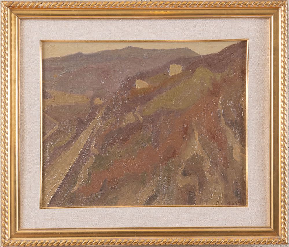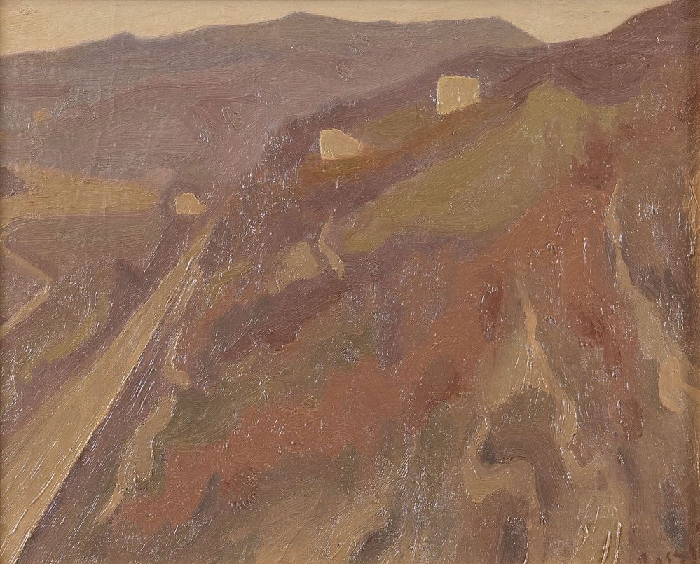 ILARIO ROSSI (Bologna 1911 - 1994) "Paesaggio". Olio su cartone intelato. Cm...
