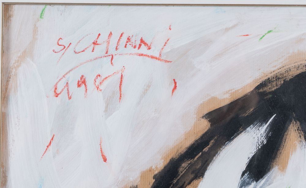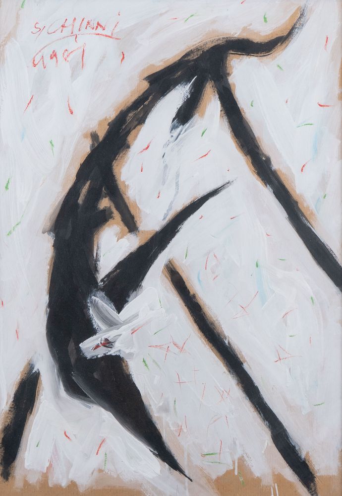 SILVANO CHINNI (Loiano 1946 - Bologna 2011) "Senza titolo", 1981. Tecnica mista su cartone. Cm 70,5x50. Opera firmata e datata in alto a sinistra S. Chinni, 1981.