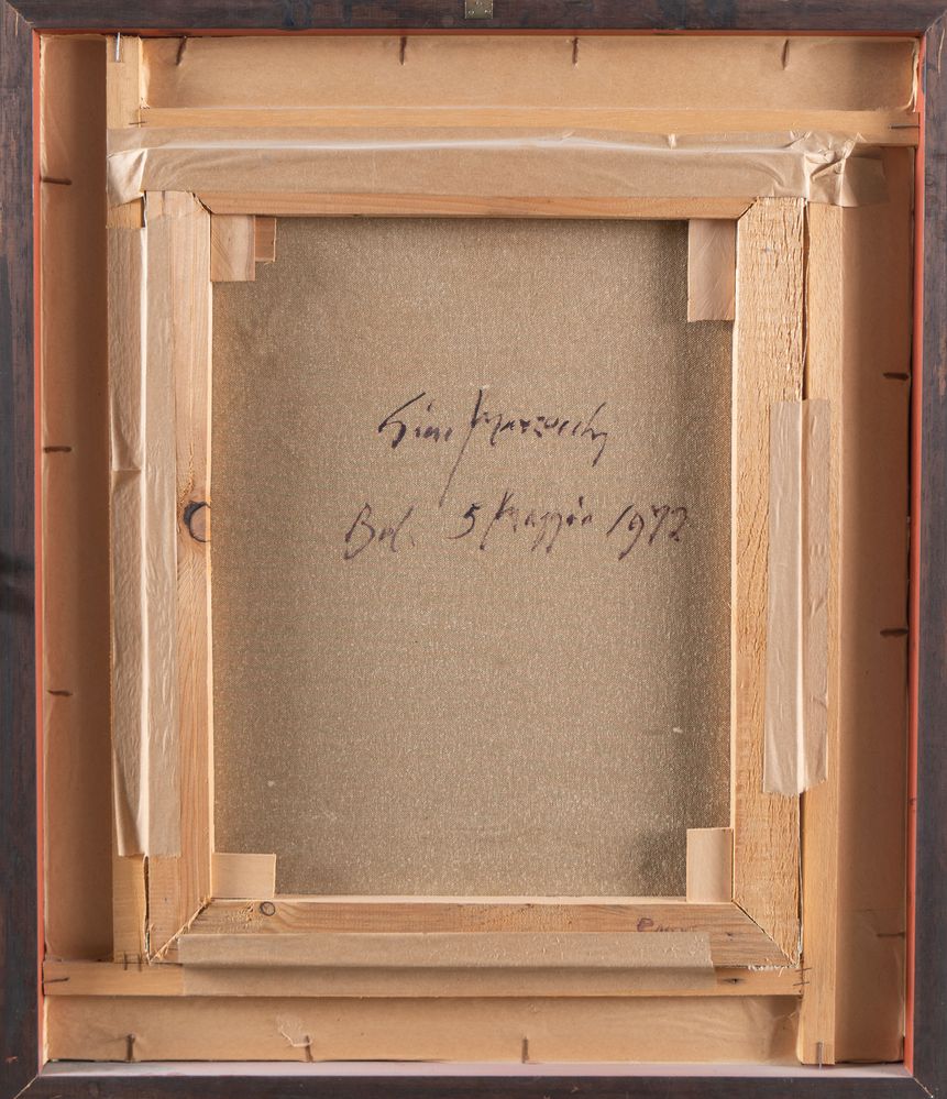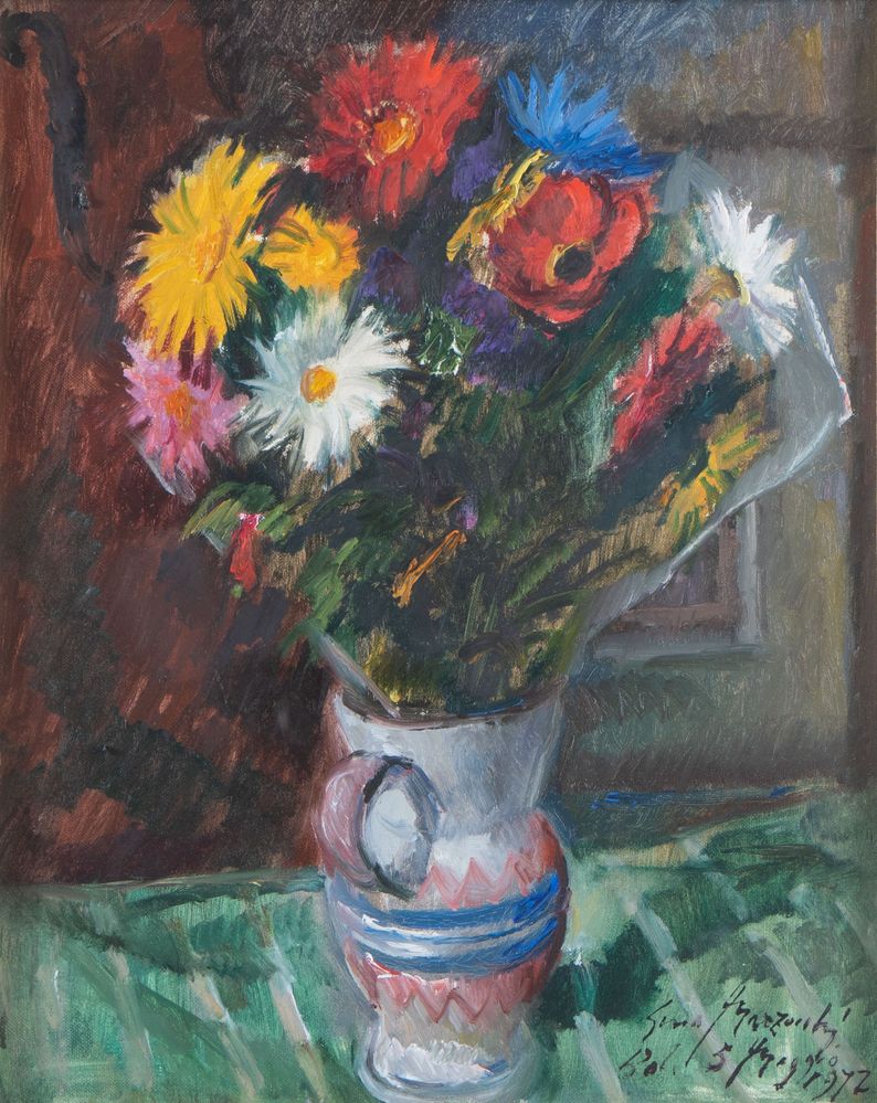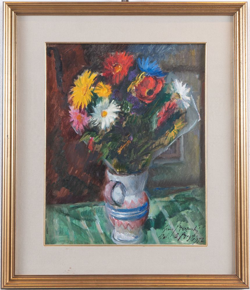 GINO MARZOCCHI (Molinella 1895 - Bologna 1981) "Vaso di fiori", 1972. Olio su tela. Cm 50x40. Opera firmata e datata in basso a destra Gino Marzocchi 1972. Al retro opera firmata e datata in basso a destra Gino Marzocchi 1972.