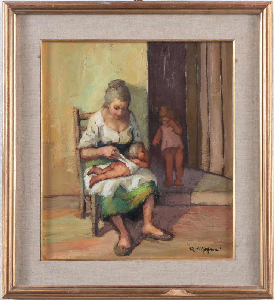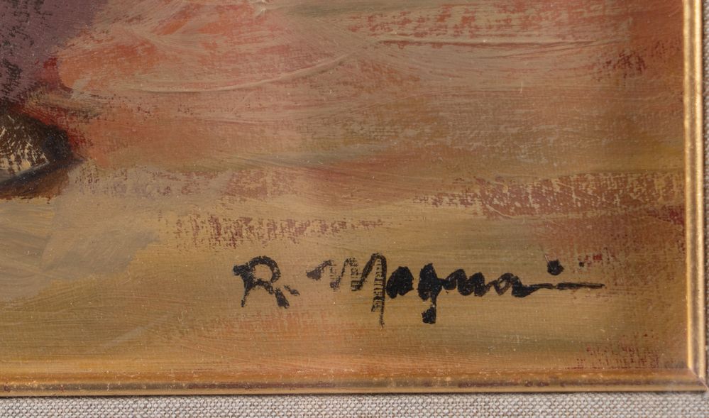 RENZO MAGNANINI (Bondeno di Gonzaga 1920 - Bentivoglio 2006) "Senza titolo". Olio su tela tamburata. Cm 40x35. Opera firmata in basso a destra R. Magnanini.