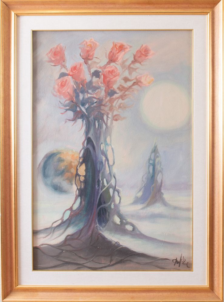 TONINO DAL RE (Imola 1924 – 2010) "Rose". Olio su tela. Cm 88x58. Opera...