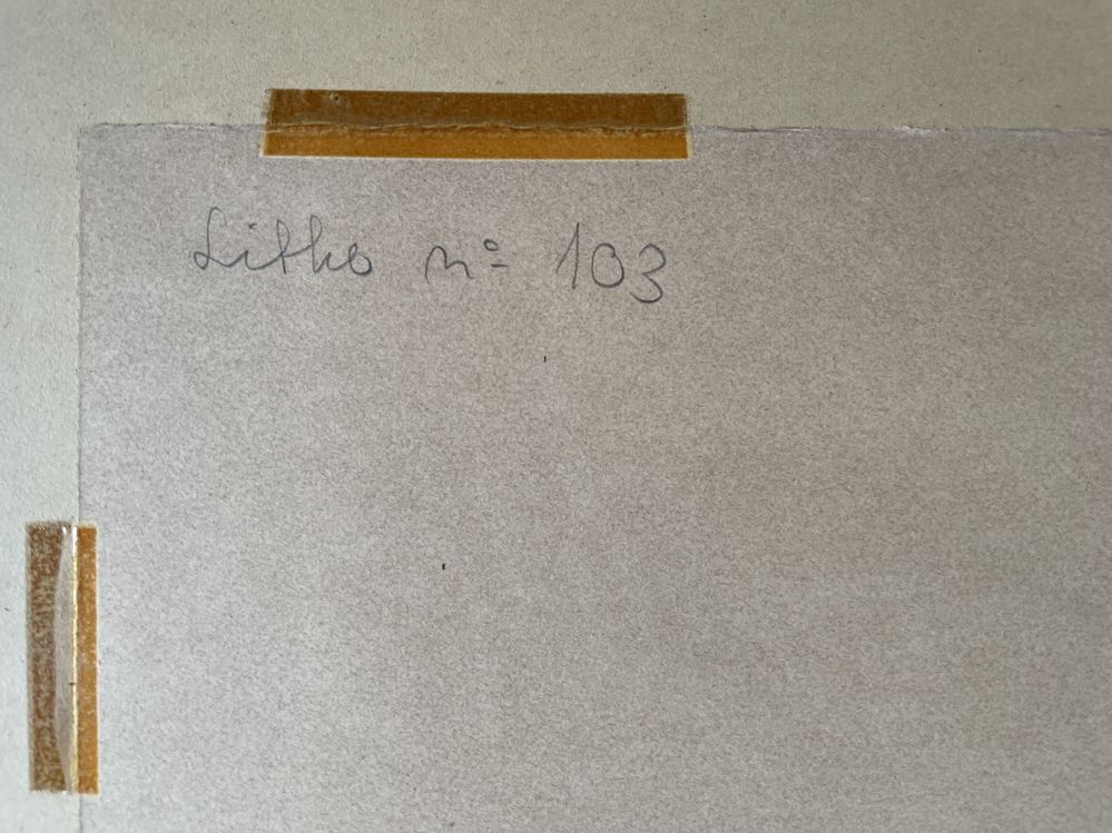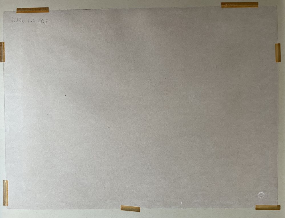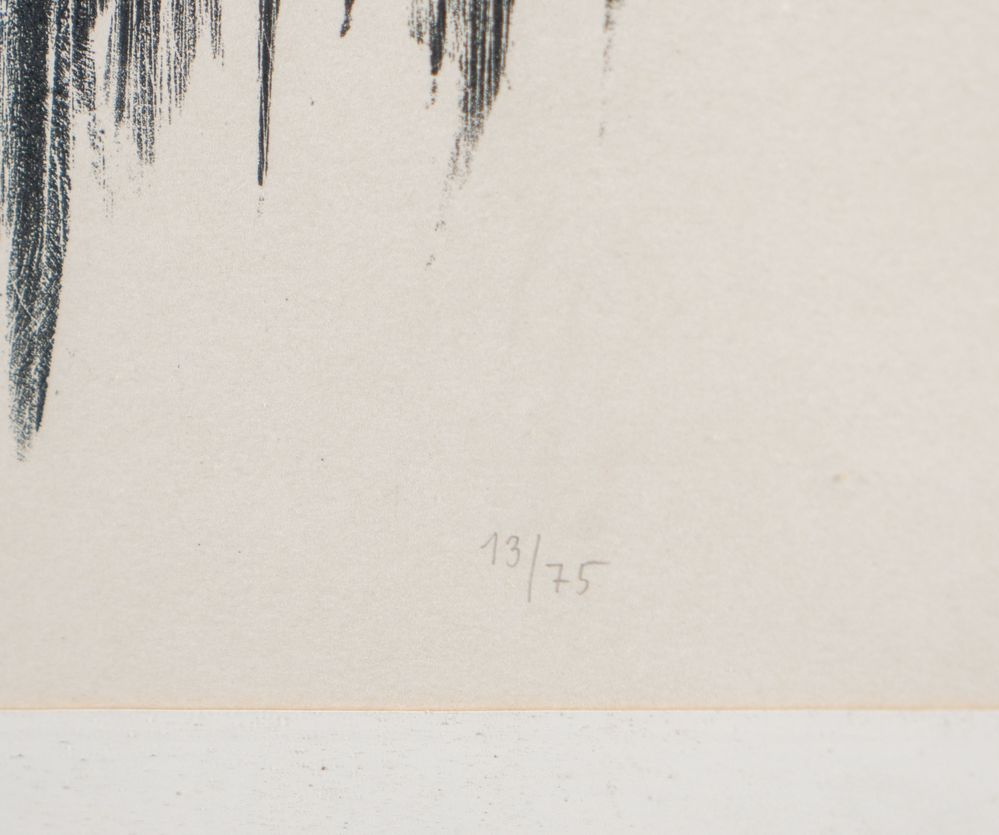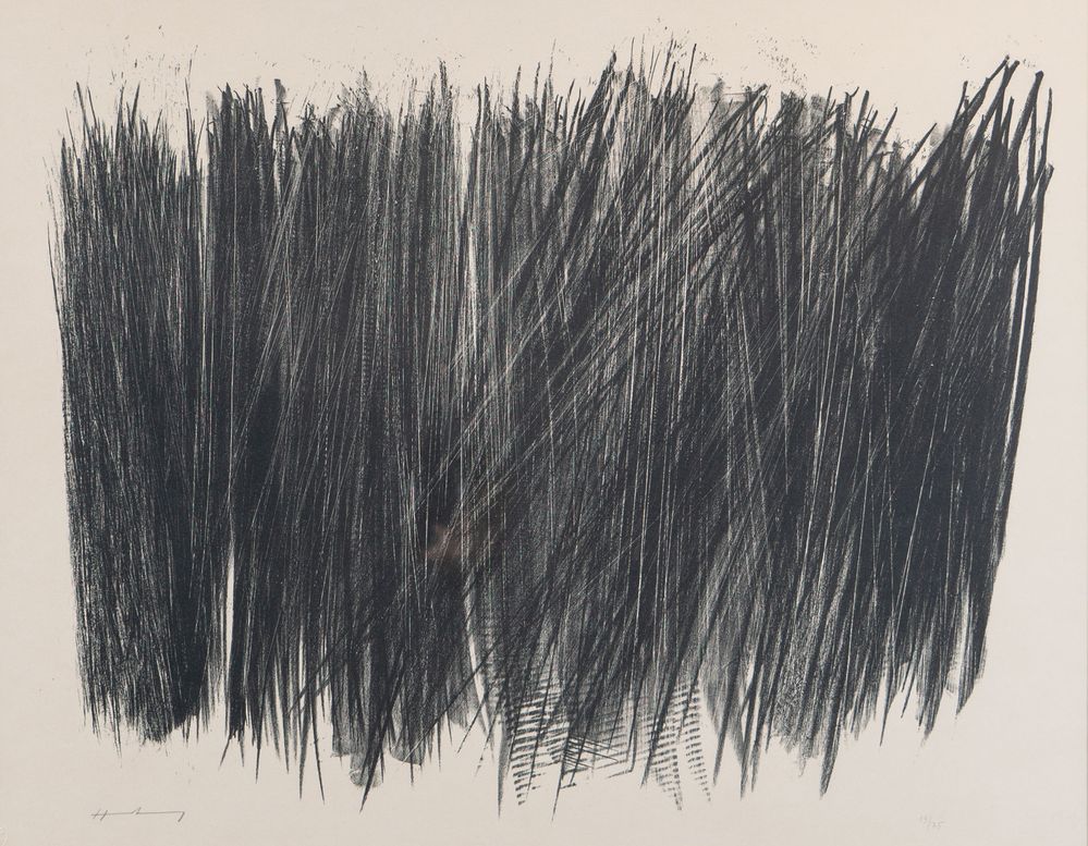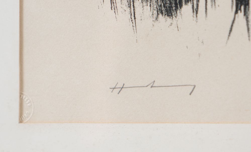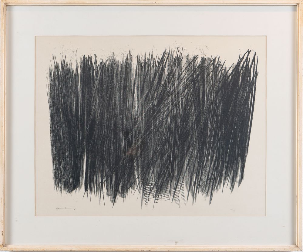 HANS HARTUNG (Lipsia 1904 - Antibes 1989) "L 103", 1963. Litografia su carta Rives. Cm 56x76,5. Opera firmata in basso a sinistra Hartung. Reca numeri di tiratura in basso a destra 13/75. Al retro reca scritta Litho n° 103. Reca timbro a secco in basso a sinistra Erker Presse, St. Gallen. Bibliografia: R. Schmucking, 'Hans Hartung. Das graphische werk 1921 - 1965', Edizioni Galerie Schmucking, Basel, 1990, p. 166.