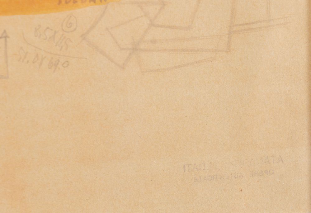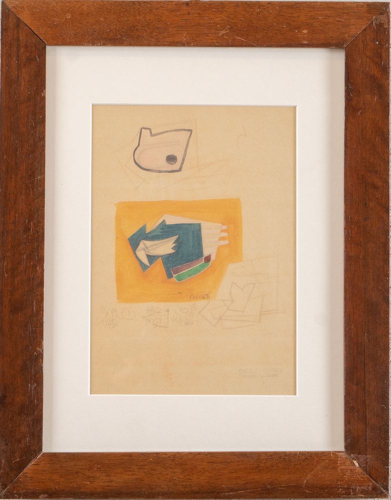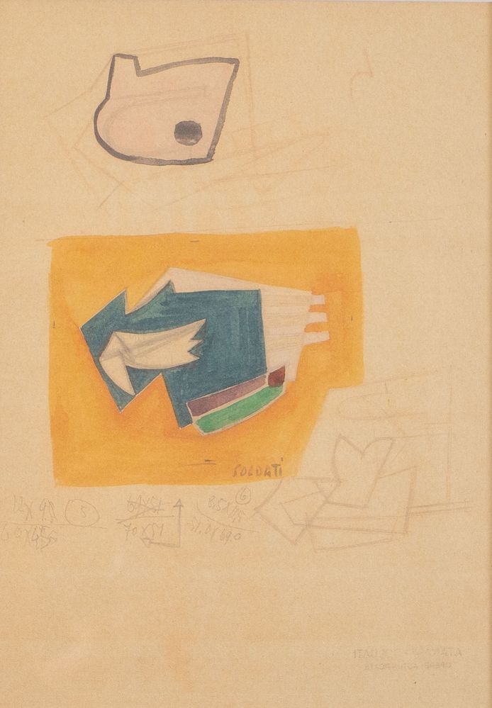 ATANASIO SOLDATI (Parma 1896 - 1953) "Senza titolo", 1950/51. Tempera e matita su carta. Cm 20,5x29,5. Opera firmata al centro Soldati. Reca timbro Atanasio Soldati Opere Autentiche. Opera accompagnata da autentica dell'Archivio Soldati, a cura di Marina Garau, n. 1195. Opera accompagnata da autentica dell'Archivio Soldati, a cura di Edoardo Brandani, n. 14029.
