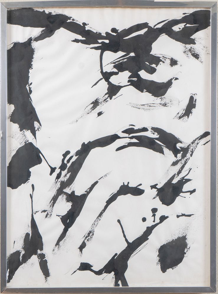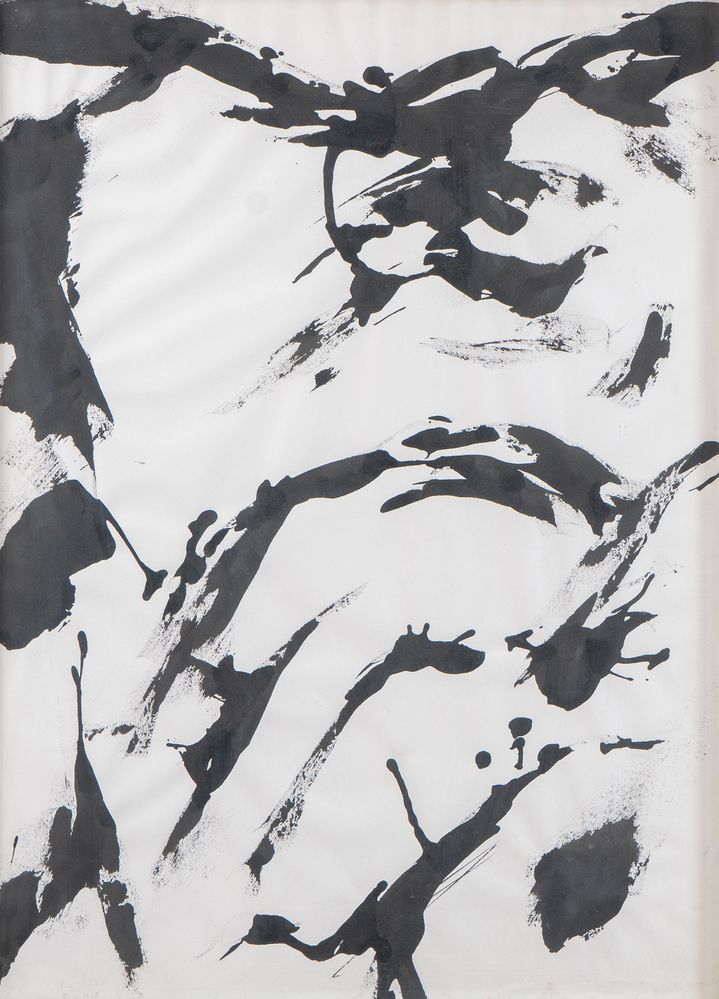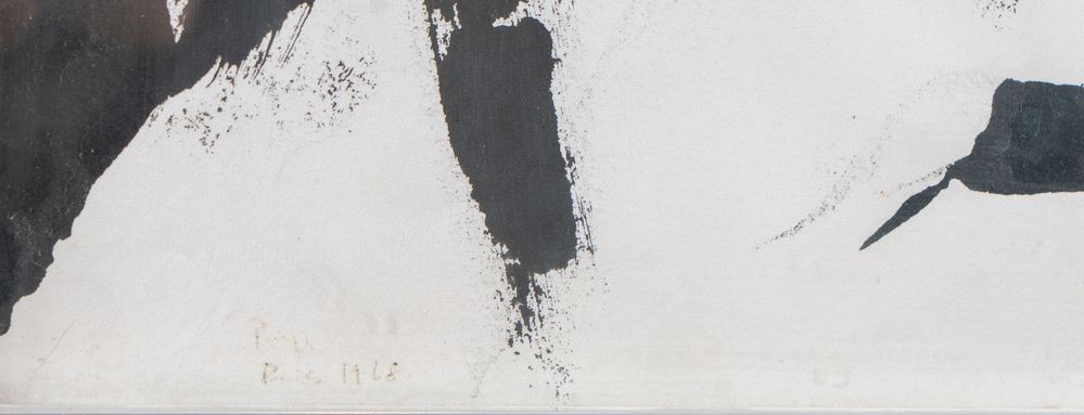 BRUNO PULGA (Bologna 1922 - 1992) "Senza titolo", 1968. China su cartoncino. Cm 75x55. Opera firmata e datata in basso a sinistra Pulga Bruno 1968. Opera accompagnata da autentica a firma Dante Forni. Provenienza: ex collezione Forni. Opera donata direttamente dall'artista a Romeo Forni in occasione della mostra presso la Galleria La Loggia e dallo stesso Romeo, critico d'arte, recensita per il quotidiano "Avanti!".
