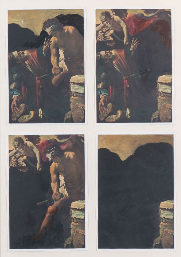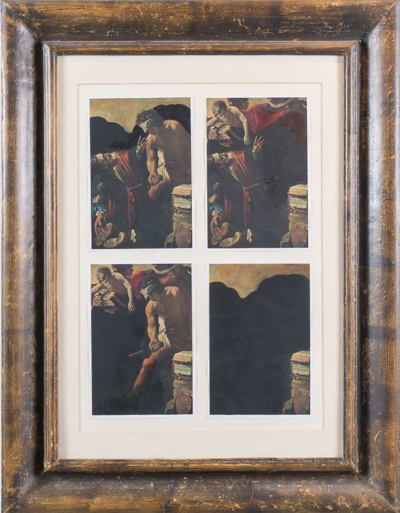 JIRI KOLAR (Protivín 1914 - Praga 2002) "Anticollage", 1968 - 1978. Tecnica mista su fotografia su carta. Opera formata da quattro pannelli cadauno di cm 27x18,5. Al retro reca scritta Jiri Kolar Anticollage 1968 - 1978. Provenienza: importante collezione privata.