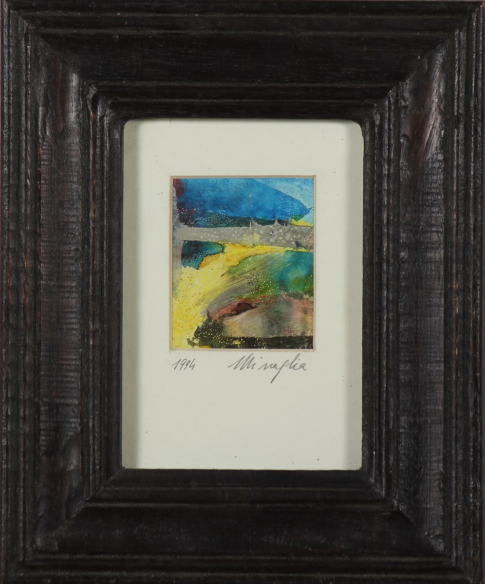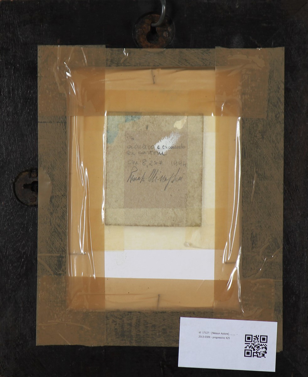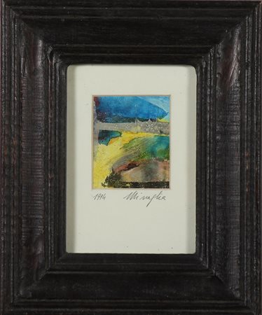 MISSAGLIA RENATO (n. 1946) Senza titolo. 1994. Tecnica mista su cartone. Cm 8,20 x 7,00. Firma e data in basso a matita. Al retro firma e data a matita. Cornice presente