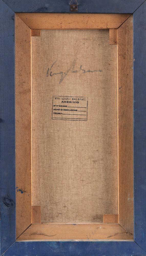VINCENZO BALSAMO (Brindisi 1935 - Roma 2017) "Senza titolo". Olio su tela. Cm 65x35. Al retro opera firmata Vincenzo Balsamo. Al retro reca timbro Vincenzo Balsamo.