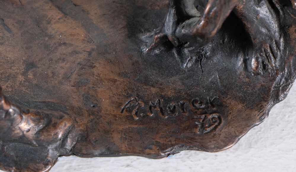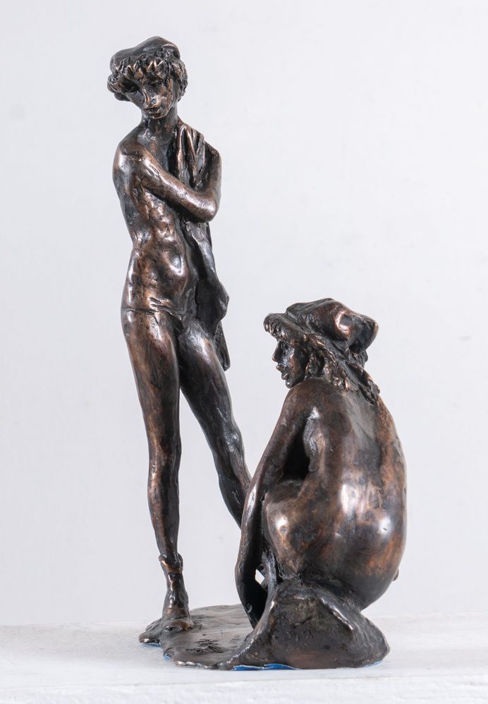 AUGUSTO MURER (Falcade 1922 - Padova 1985) "Bagnanti", 1979. Scultura in bronzo. Cm 32x20,5,11,5. Opera firmata e datata alla base A. Murer 79. 25 esemplari.