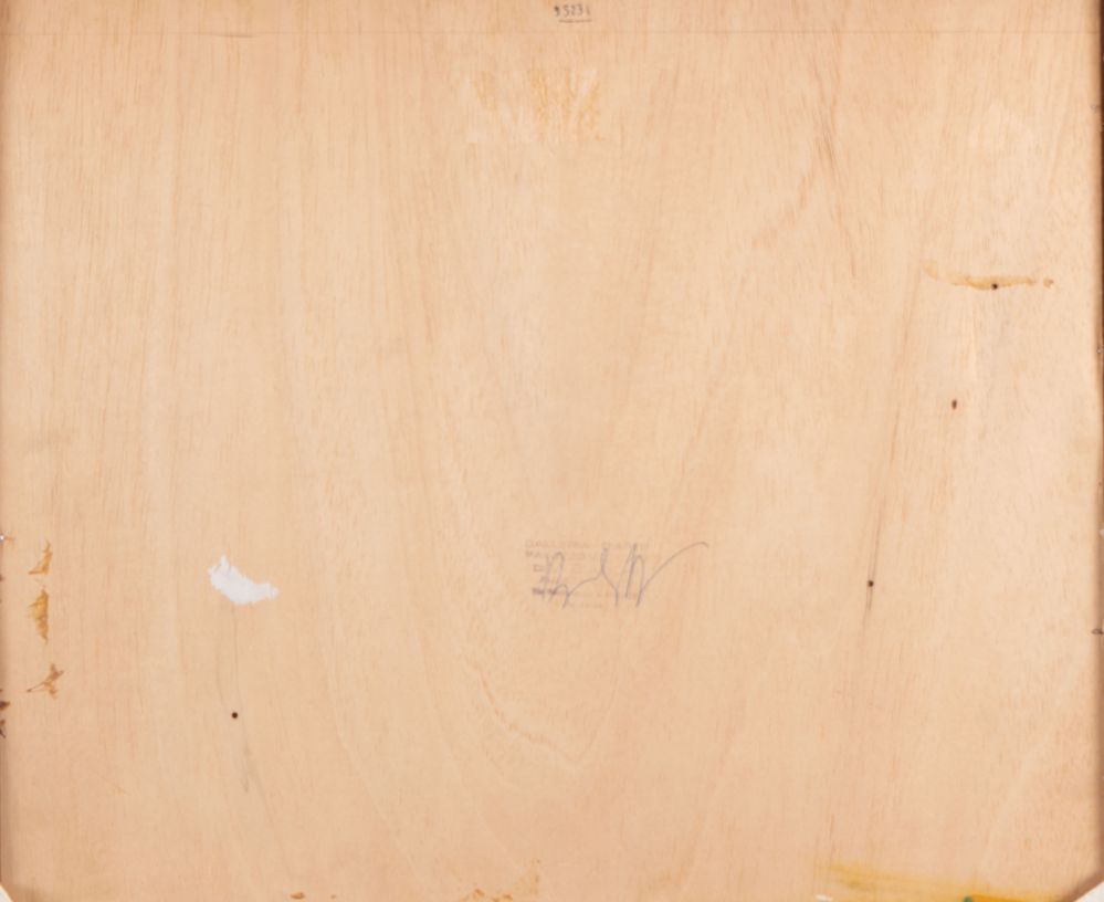GIOVANNI KOROMPAY (Venezia 1904 - Rovereto 1988) "Senza titolo". Tecnica mista su tavola. Cm 32x40. Opera siglata in basso a destra K. Al retro reca timbro con firma della galleria d'arte Palazzo Vecchio di M. Bianchi, Firenze.