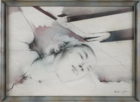 MARPICATI IROS (n. 1935) Volto. 1993. Tecnica mista su carta. Cm 70,00 x 50,00. Firma e data in basso a destra. Cornice presente