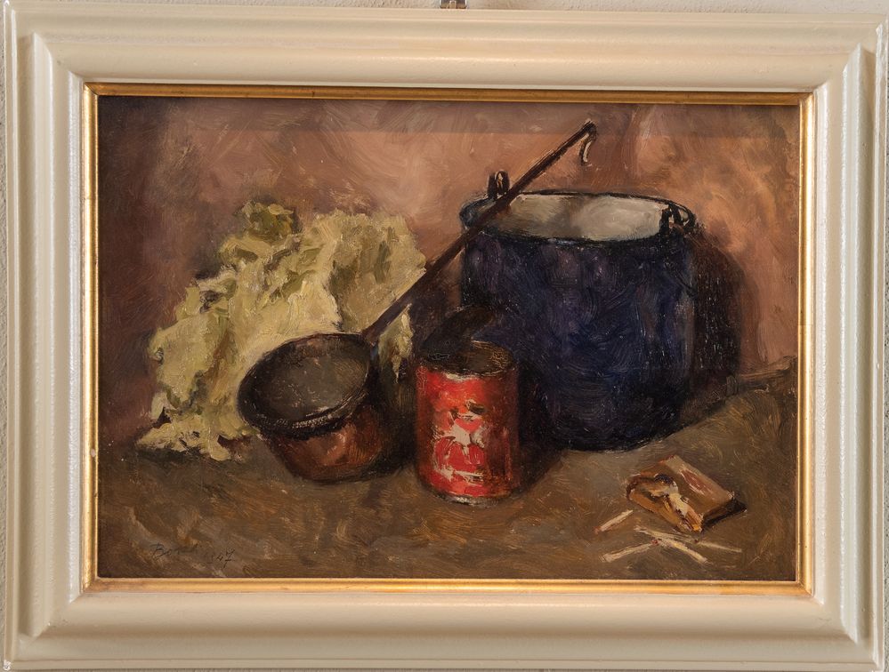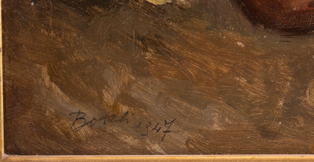 DINO BOSCHI (Bologna 1923 - 2015) "Natura morta", 1947. Olio su faesite. Cm 36x51. Opera firmata e datata in basso a sinistra Boschi 1947.