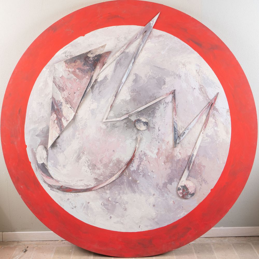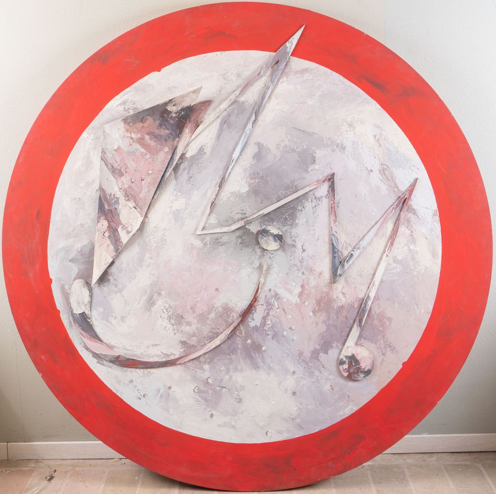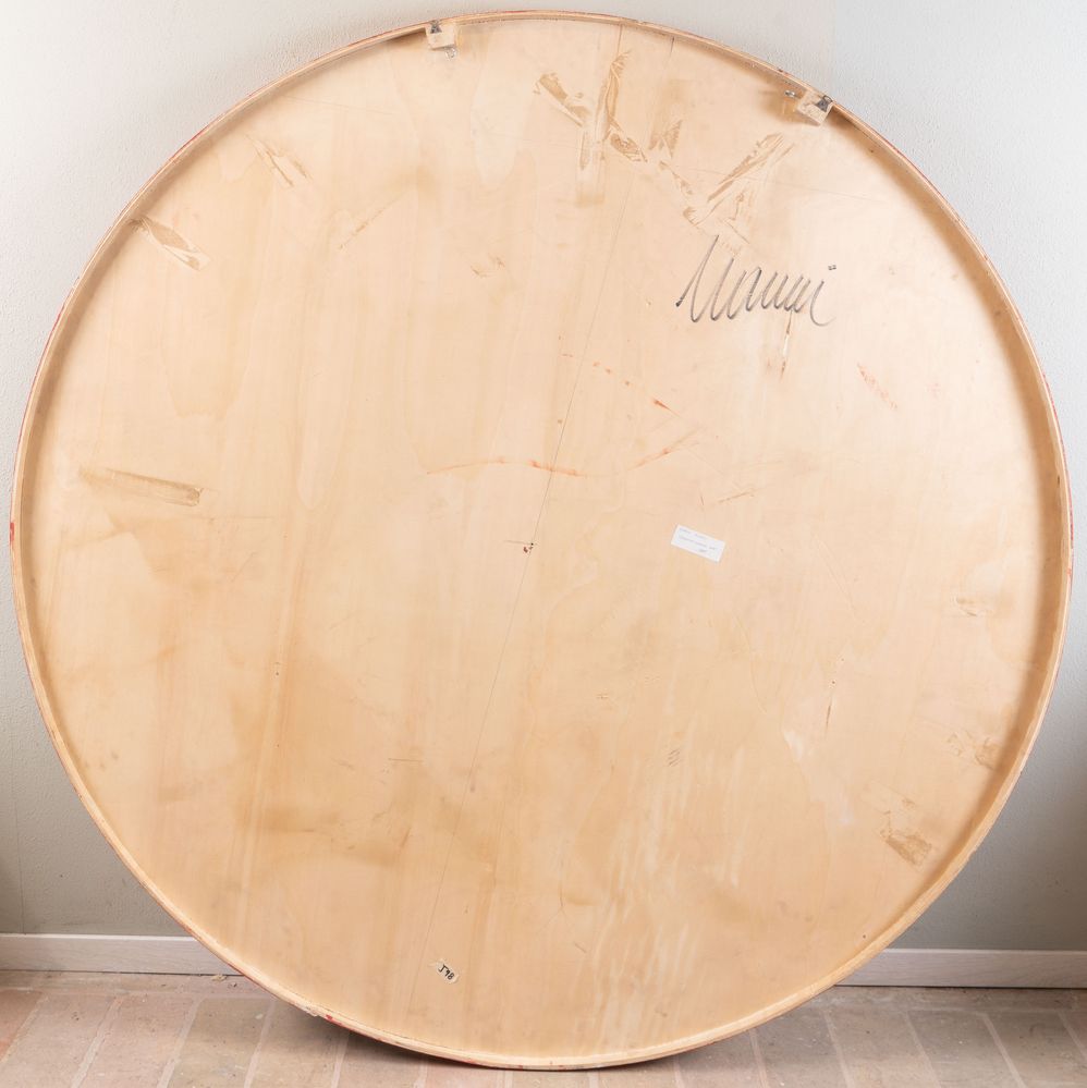 MARIO NANNI (Castellina in Chianti 1922) "Senza titolo", dalla serie Stratificazioni 2, 1985. Olio, tecnica mista e collage su tavola. Cm Ø184. Al retro opera firmata Nanni.