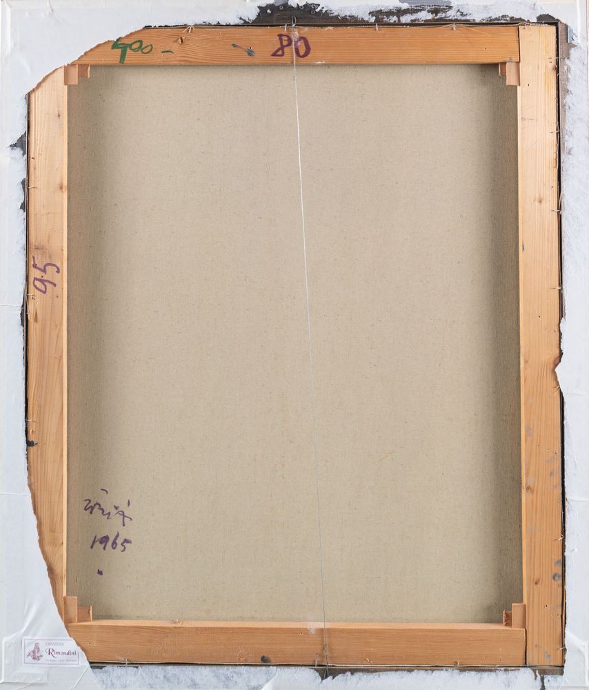 SERGIO ROMITI (Bologna 1928 - Bologna 2000) "Composizione", 1965. Olio su tela. Cm 94x79. Al retro opera firmata Romiti 1965.