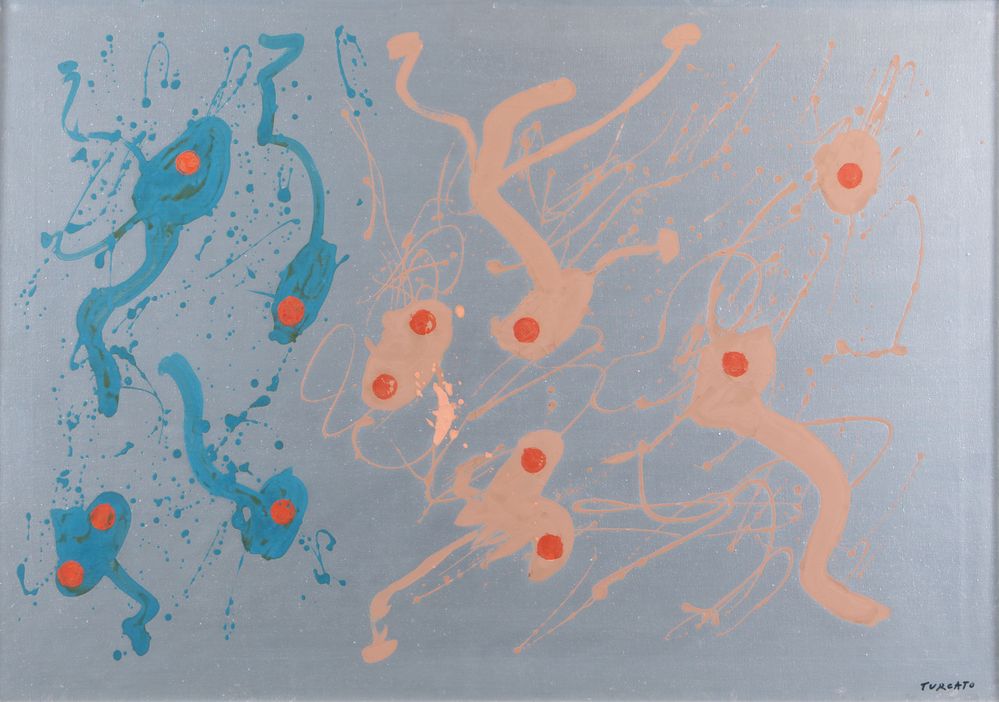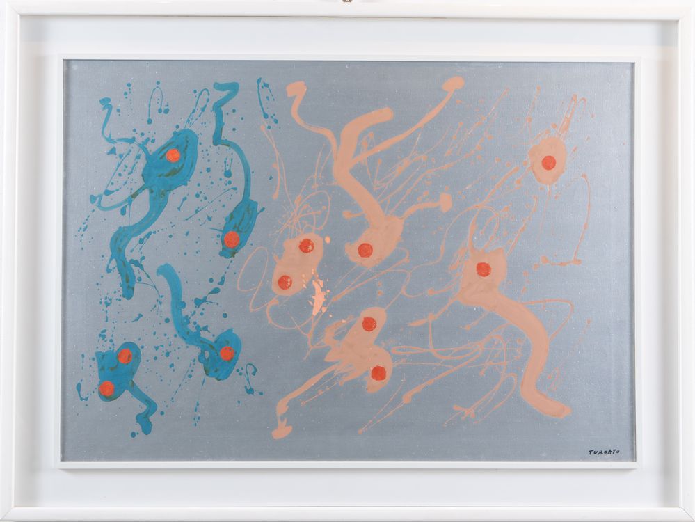 GIULIO TURCATO (Mantova 1912 - Roma 1995) "Senza titolo". Olio su tela. Cm 70x100. Opera firmata in basso a destra Turcato. Al retro reca firma e numeri 127-4150-73 e -179293261221. Opera accompagnata da autentica su doppia fotografia dell'Archivio Giulio Turcato. Provenienza: Galleria Morone, Milano. Importante collezione privata.