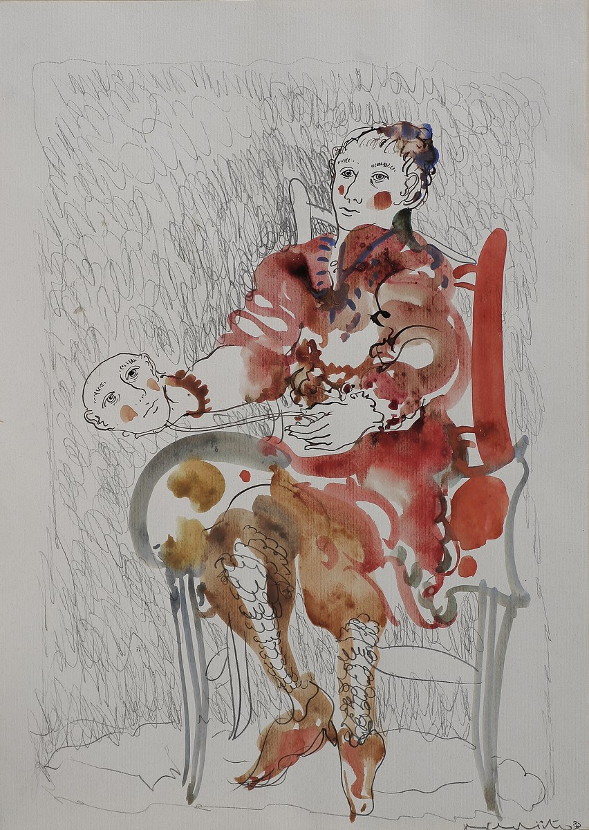 GHILARDI ITALO Senza titolo. 1983. Tecnica mista su carta. Cm 36,00 x 51,00. Firma e data in basso a destra a matita.