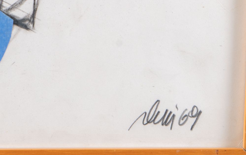 FABRIZIO PLESSI (Reggio Emilia 1940) "Senza titolo", 1969. Tecnica mista su carta. Cm 50x35. Opera firmata e datata in basso a destra Plessi '69. Al retro reca autentica a firma del pittore.