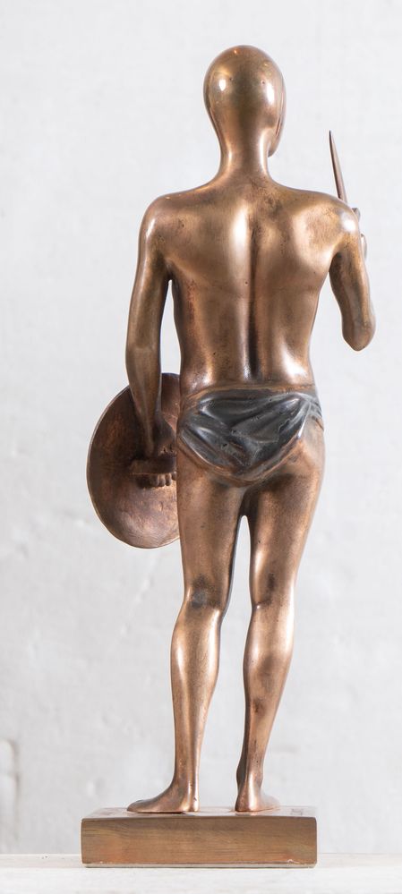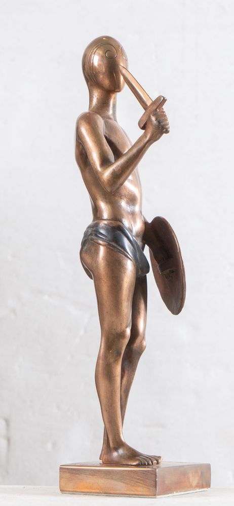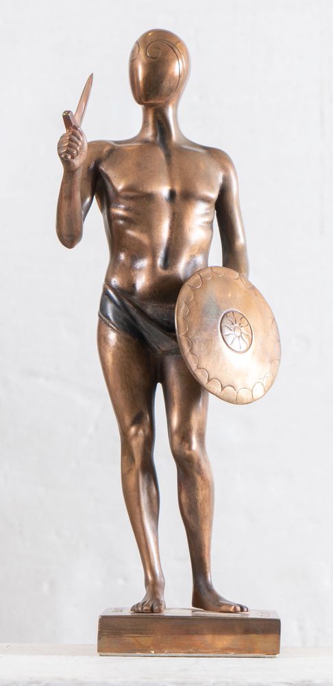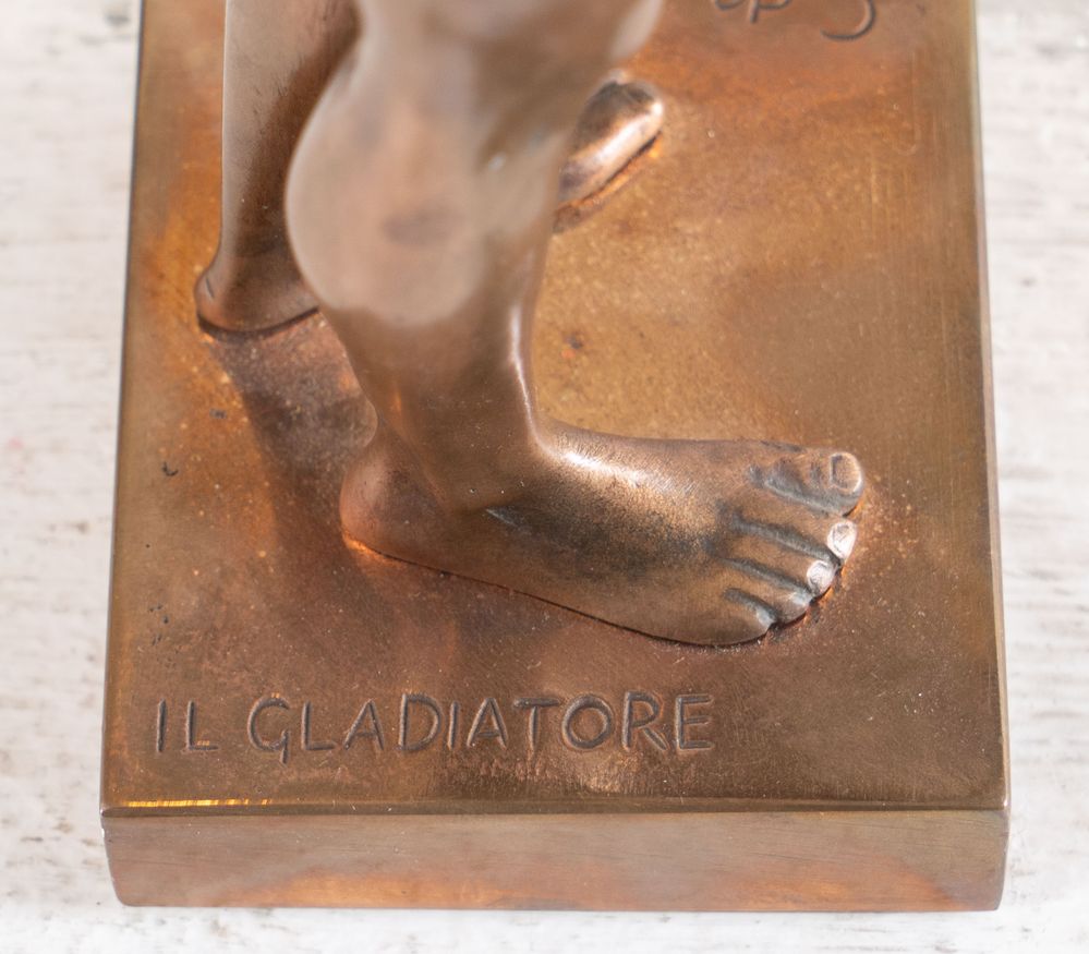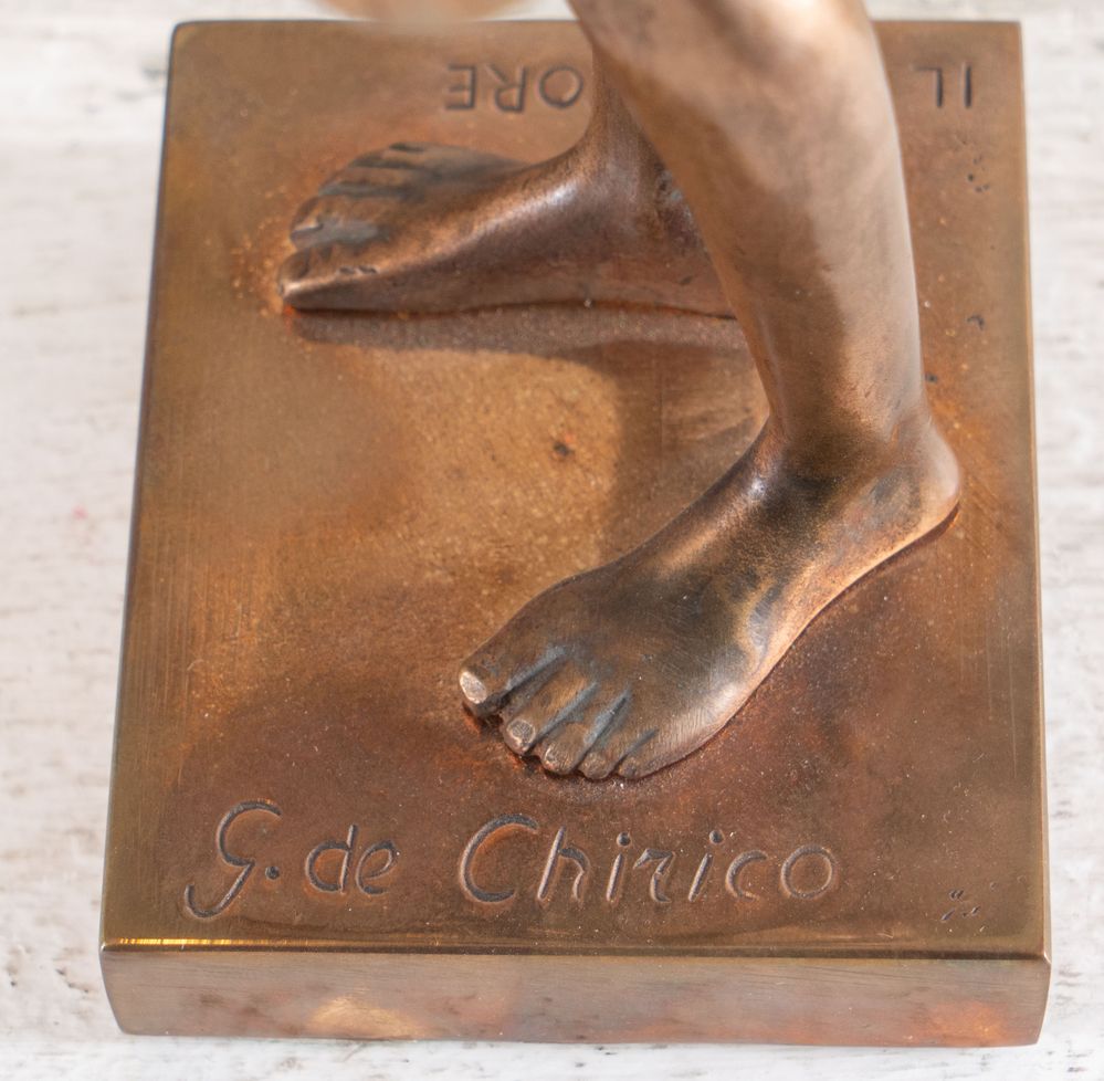 GIORGIO DE CHIRICO (Volo 1888 - Roma 1978) "Il gladiatore", 1988. Scultura in bronzo. Cm 31x10x7. Opera firmata e intitolata alla base G. De Chirico Il gladiatore. Multiplo realizzato dalla Fondazione Giorgio e Isa de Chirico, in occasione del Centenario della nascita del maestro, da una scultura in bronzo eseguita dal maestro nel 1968.
