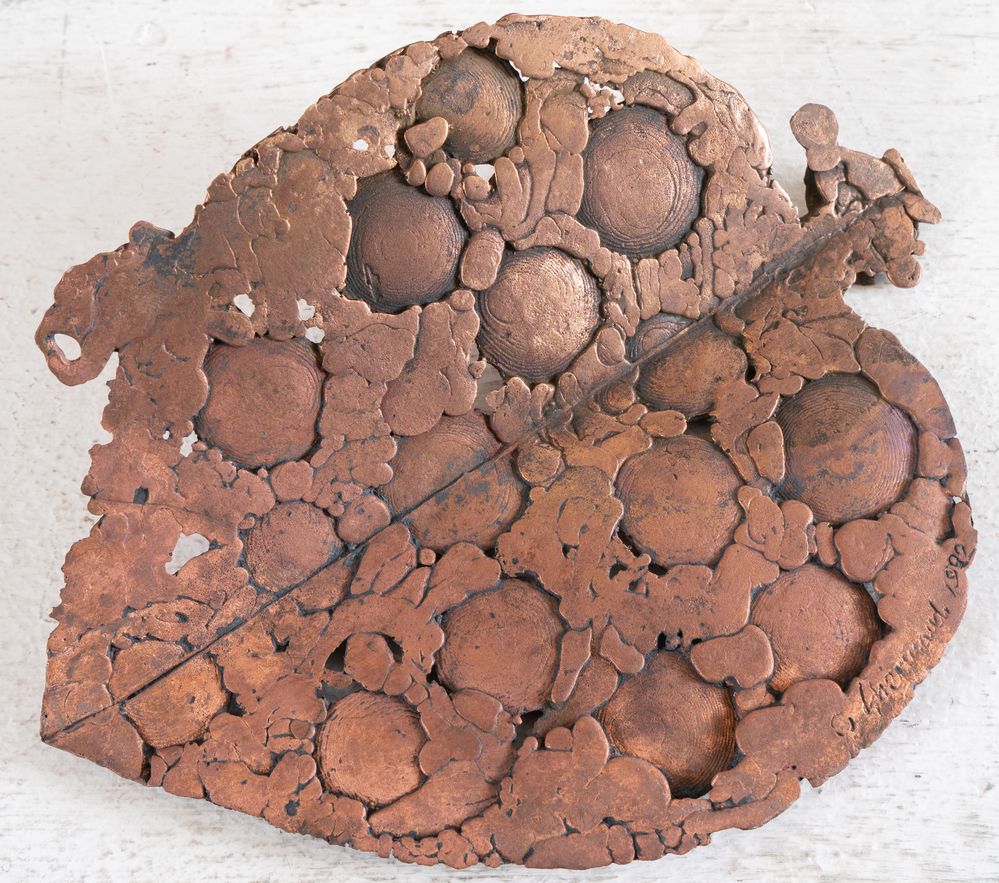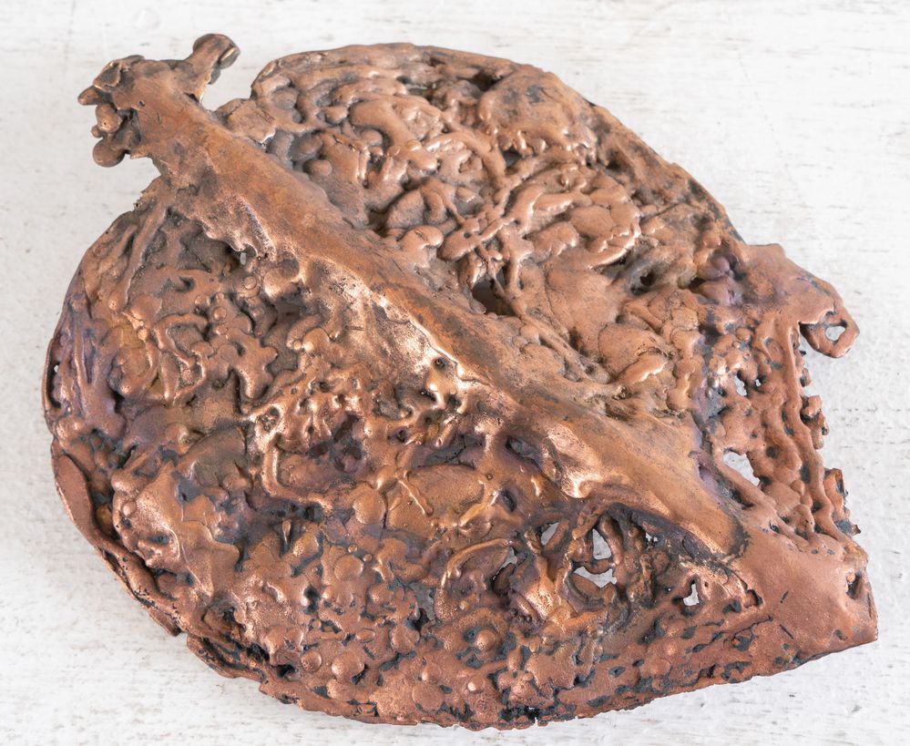 QUINTO GHERMANDI (Crevalcore 1916 - San Lazzaro di Savena 1994) "Senza titolo", 1982. Scultura in bronzo. Cm 23,3x17,5. Al bordo opera firmata e datata Q. Ghermandi 1982.