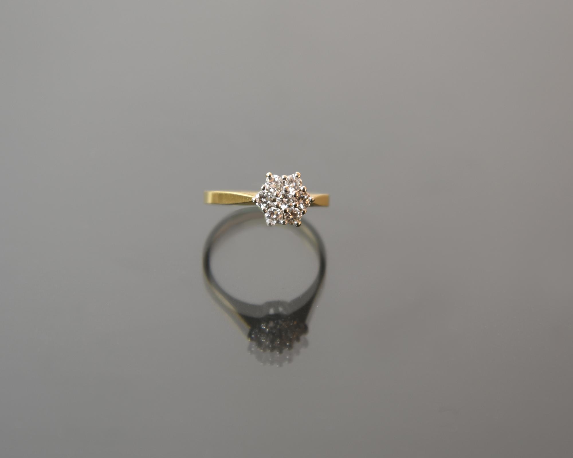 in oro bianco e giallo 18kt, con 7 diamanti rotondi taglio brillante, per compessivi 0,49 ct circa. Peso complessivo, misura 13