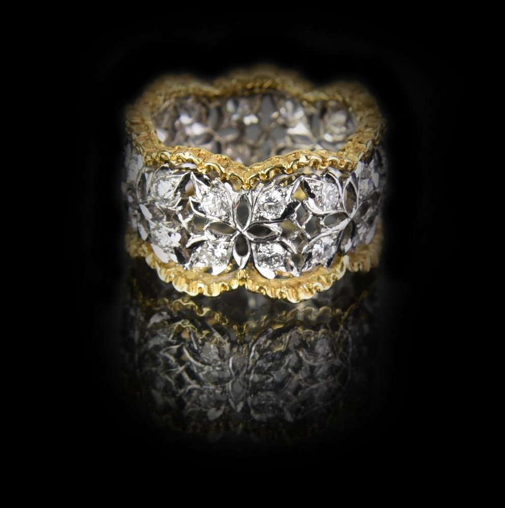 Lotto 28 | ANELLO ETERNELLE RAMAGE BUCCELLATI in oro bianco e giallo 18kt, ornato da...