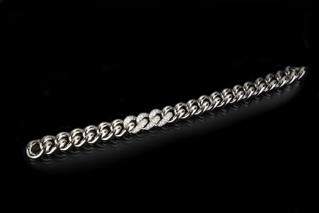 in oro bianco 18kt, a maglia barbazzale, decorato al centro con pave' di diamanti taglio brillante, con punzone Pomellato. Peso complessivo gr.78,2 circa, lunghezza cm 19,5
