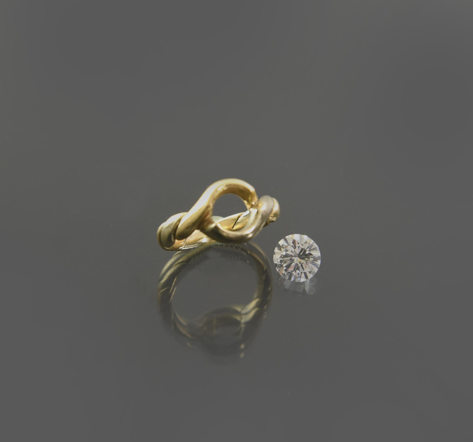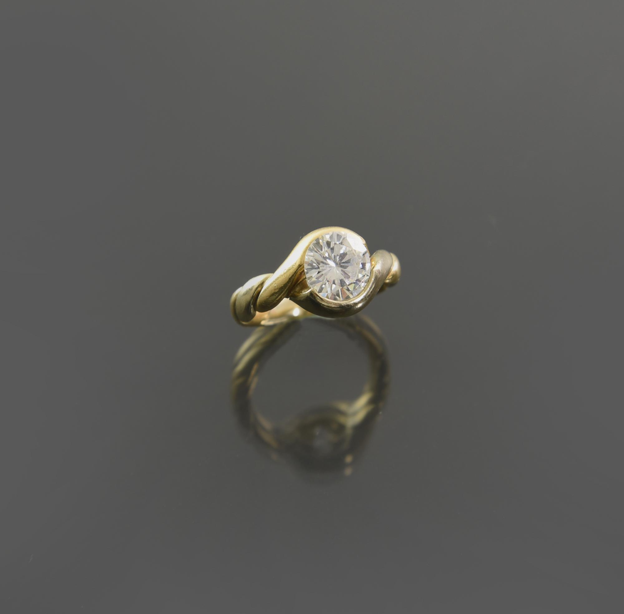 diamante rotondo taglio brillante di 2,04 ct, colore F, purezza VS2, smontato e corredato di montatura bicolore in oro giallo e bianco 18kt, dal peso di gr. 10,15 circa