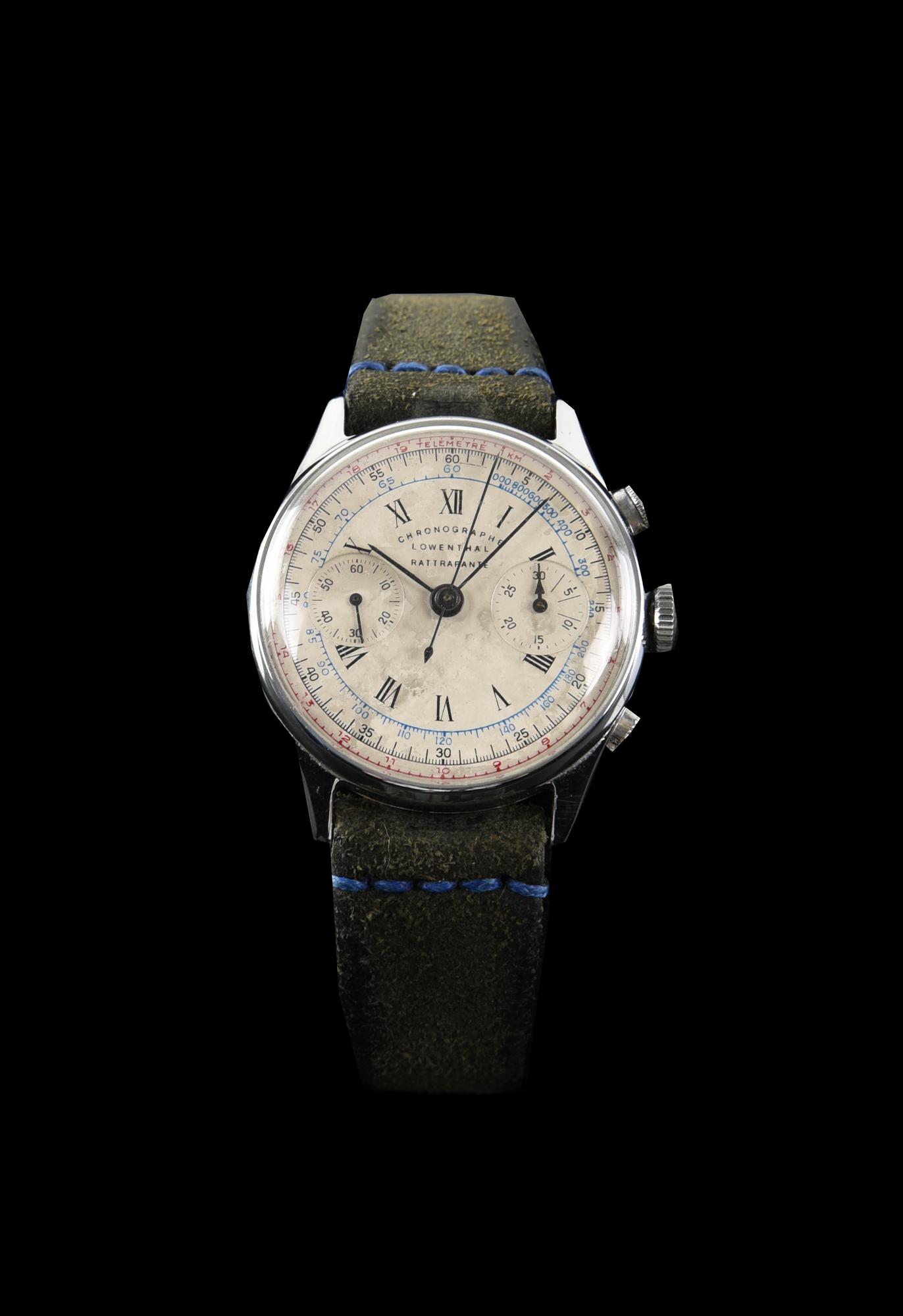 LOWENTHAL CRONOGRAFO RATTRAPPANTE A DUE CONTATORI 1950 CIRCA SERIAL NUMBER...
