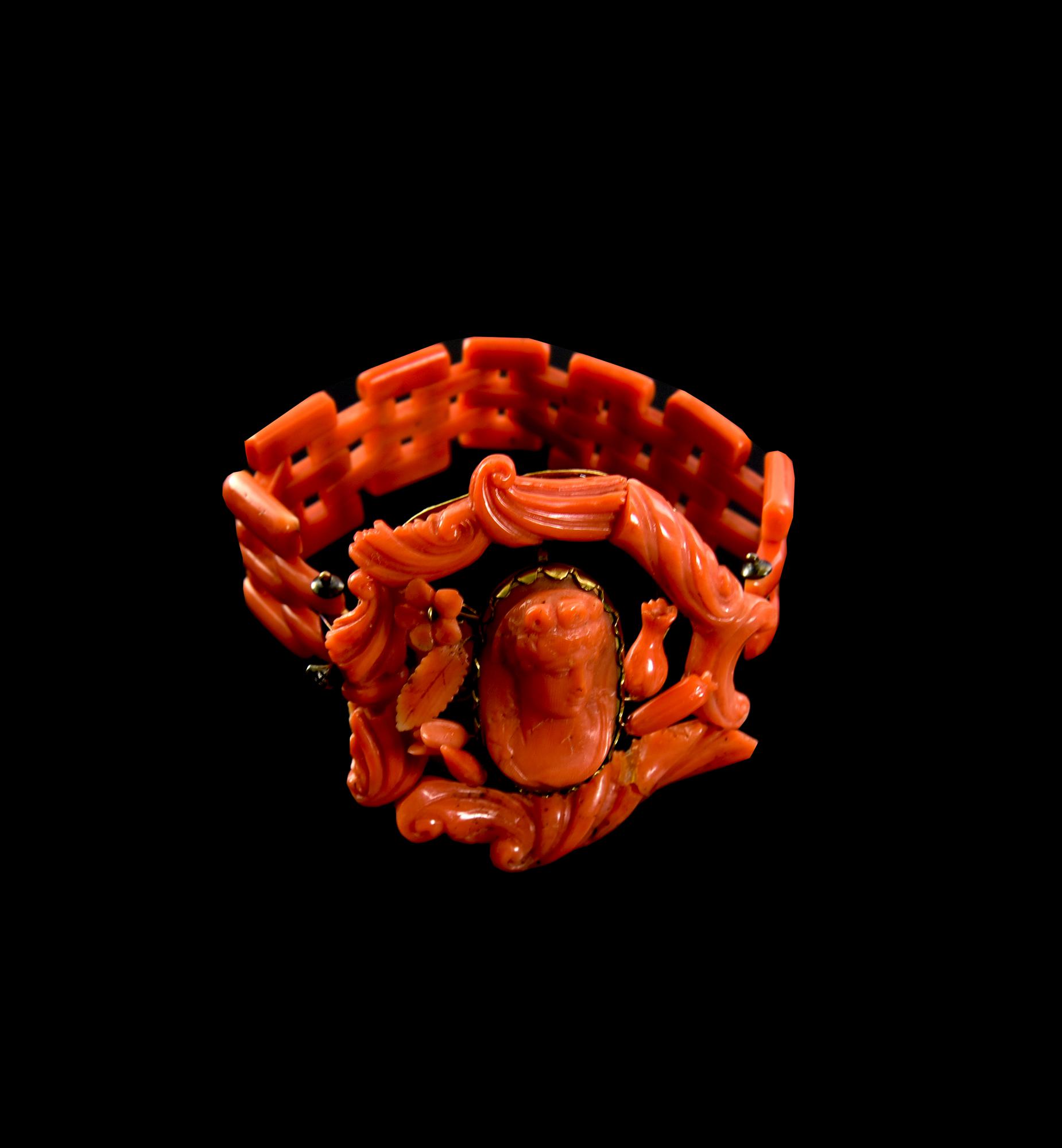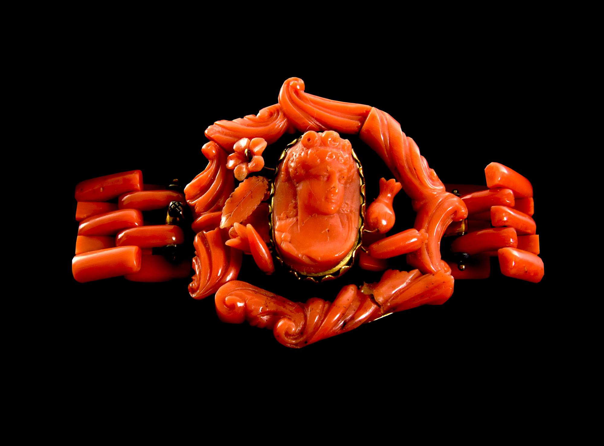Lotto 47 | BRACCIALE IN CORALLO E ORO 9KT bracciale con cammeo centrale e motivo...