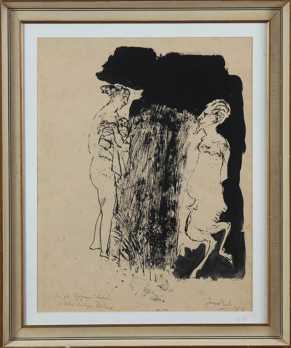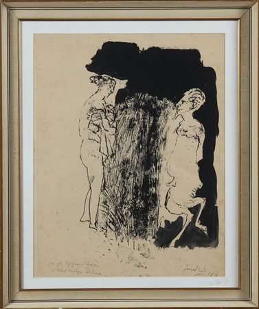MATTIOLI CARLO (1911 - 1994) Senza titolo. 1962. China su carta. Cm 34,50 x 44,50. In basso a sinistra reca la dicitura: Per gli Epigrammi Erotici, V libro Antologia Palatina. Firma e data in basso a destra. Cornice presente