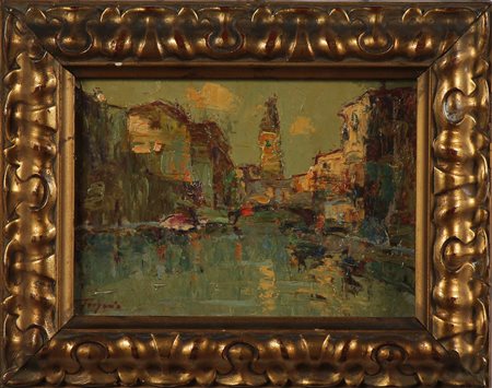 ANONIMO Senza titolo. Olio su cartone. Cm 18,50 x 13,00. In basso a sinistra reca la firma Frigerio. Cornice presente