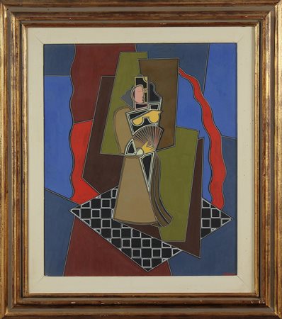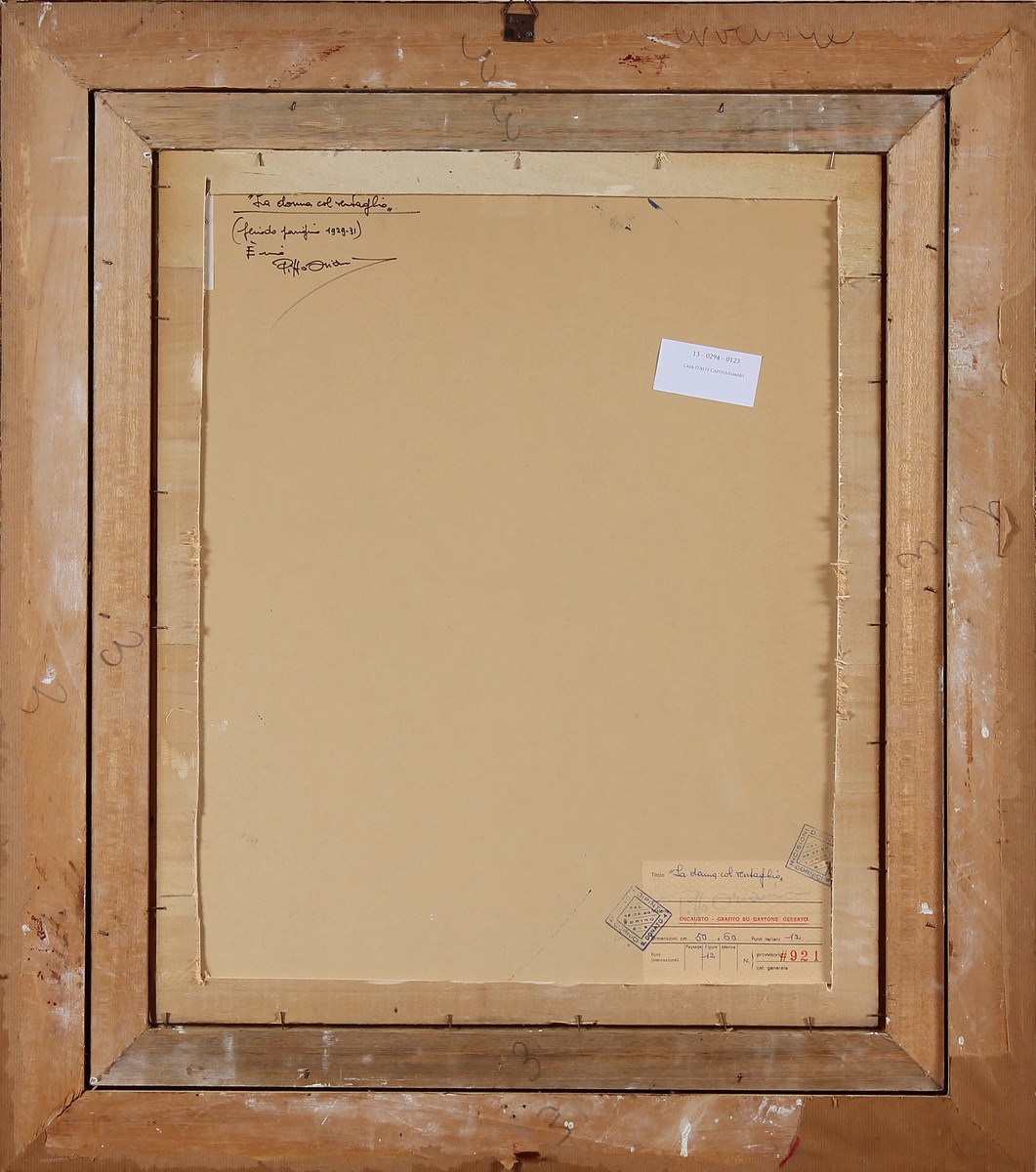 ORIANI PIPPO (1902 - 1972) La donna col ventaglio. Encausto su cartone gessato. Cm 50,00 x 60,00. 1929/31. Firma in basso a destra. Al retro reca il cartiglio dell'artista riportante titolo firma e data. opera archiviata presso la Fondatio Pippo Oriani, Jussy Metz, Francia, come da documentazione fotografica allegata all'opera riportante il relativo numero d'inventario. Cornice presente