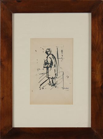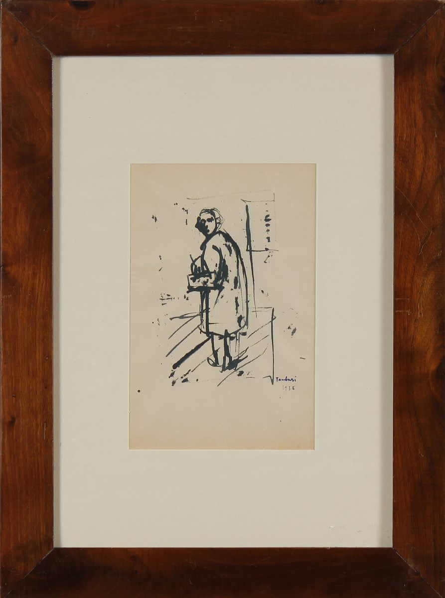 TAMBURI ORFEO (1910 - 1994) Senza titolo. 1938. Pennarello su carta. Cm 28,00 x 21,00. Firma e data in basso a destra. Autentica dell'artista su fotografia. Cornice presente