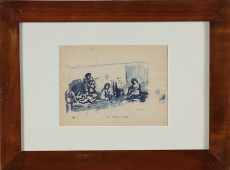 TAMBURI ORFEO (1910 - 1994) Le vergini savie. Pennarelli su carta. Cm 18,50 x 28,00. Firma e titolo in basso a biro. Autentica dell'artista su fotografia. Cornice presente