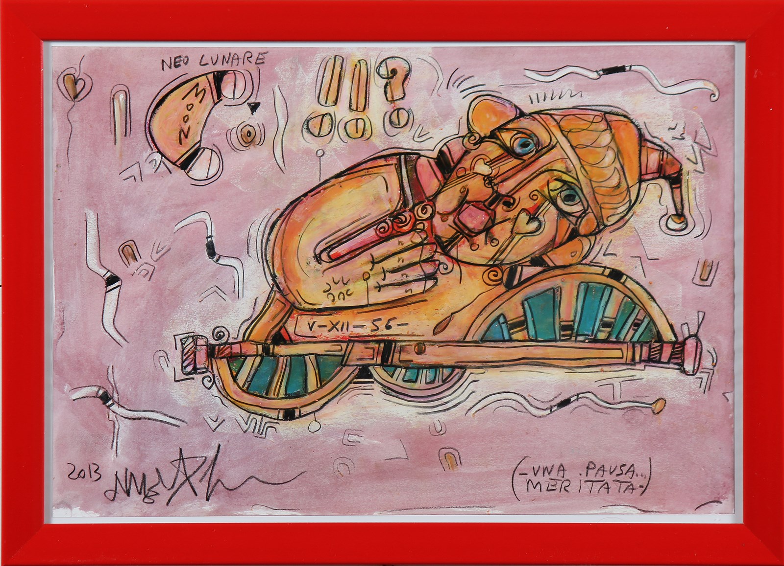 DELEGO MARTINO (n. 1956) Una pausa meritata. 2013. Tecnica mista su cartoncino. Cm 47,00 x 33,00. Firma, titolo e data in basso. Autentica dell'artista su fotografia. Cornice presente