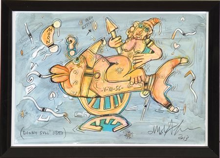 DELEGO MARTINO (n. 1956) Donna sull'orata. 2013. Tecnica mista su cartoncino....